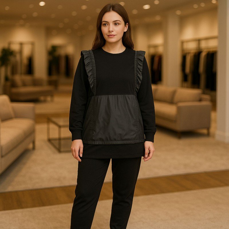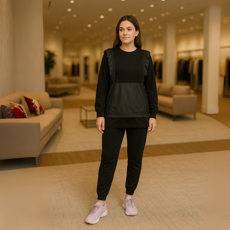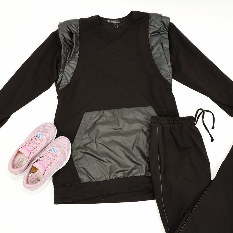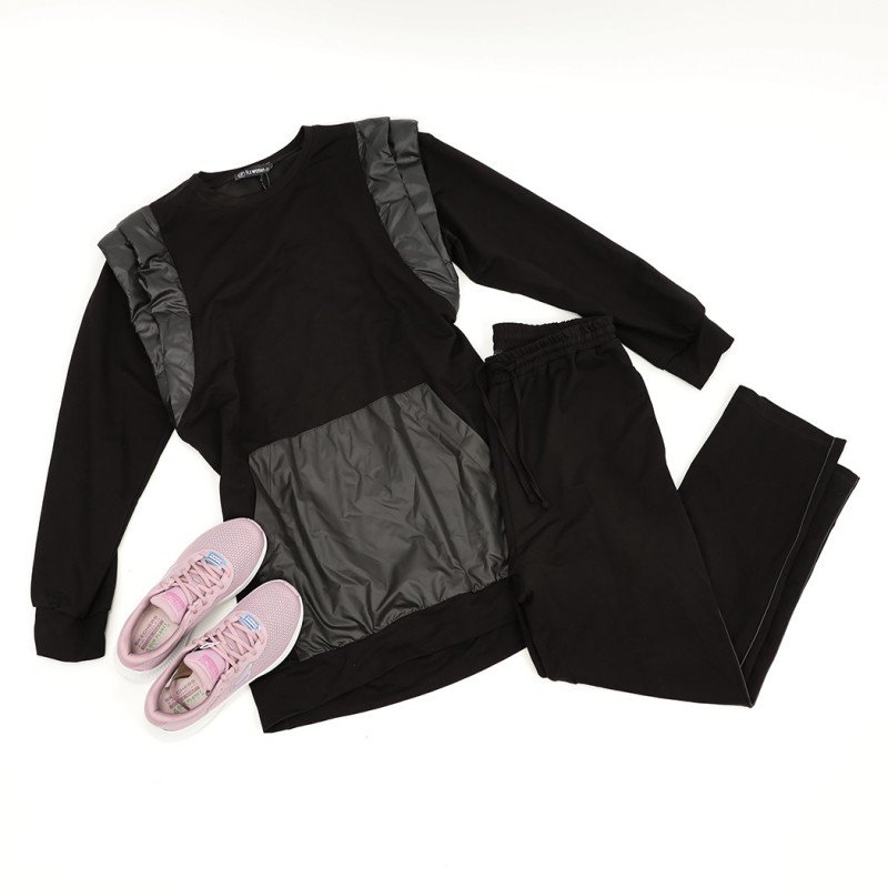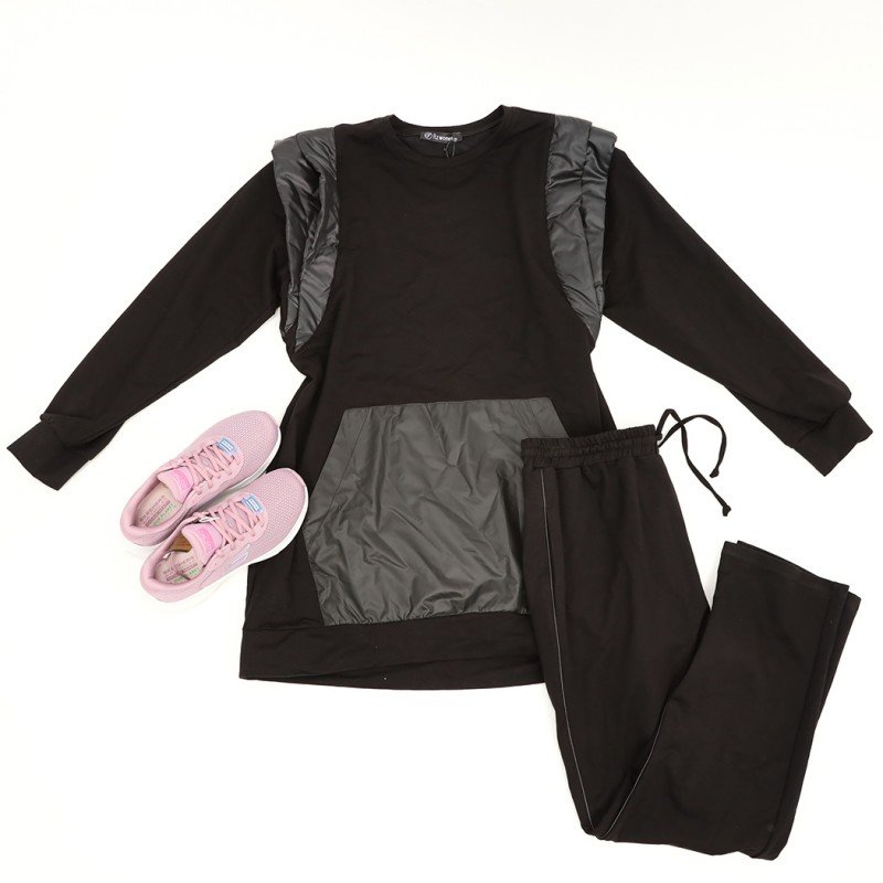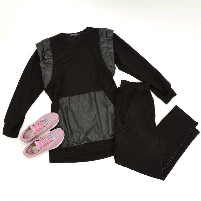 ✅ ترينج هودي طويل مع بنطال لون أسود.