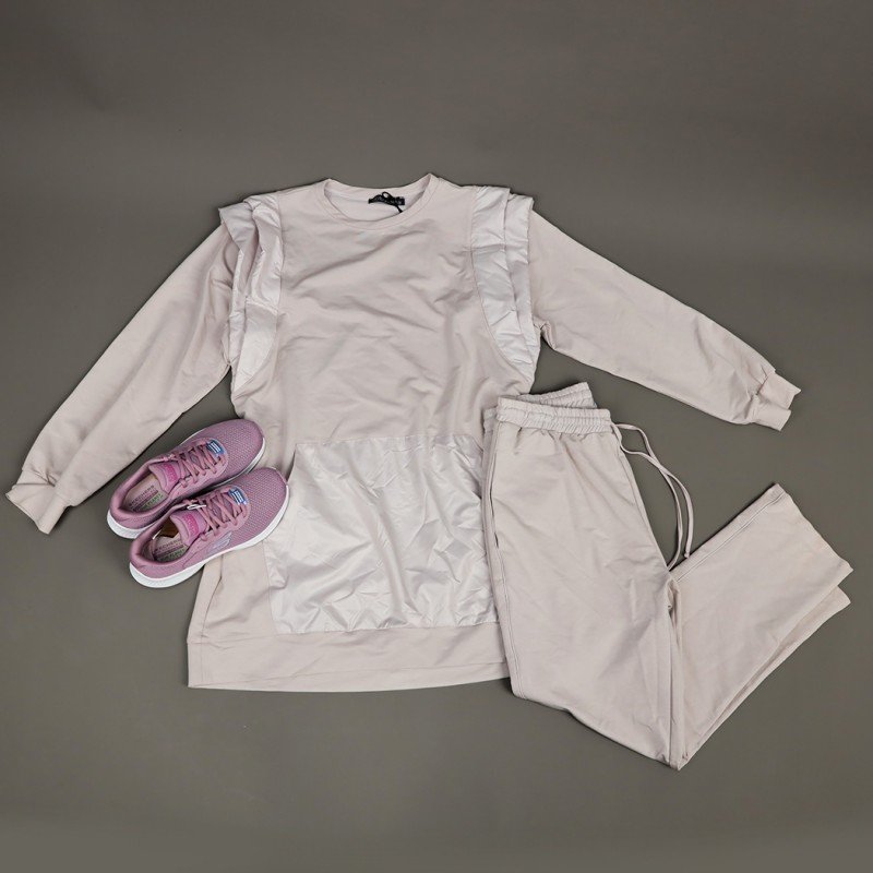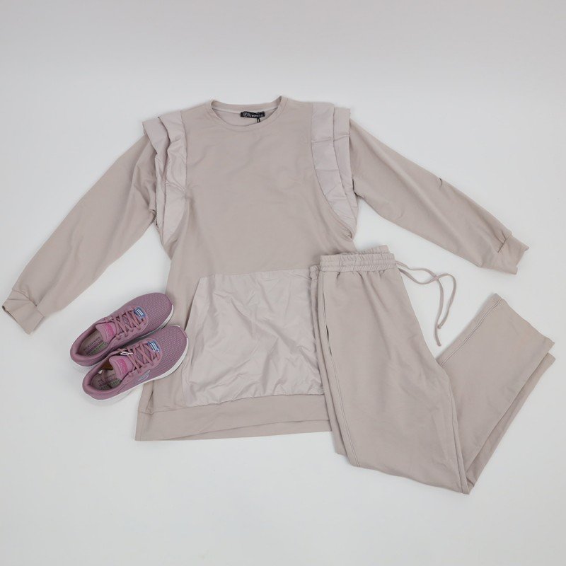 ✅ ترينج هودي طويل مع بنطال لون رمادي.