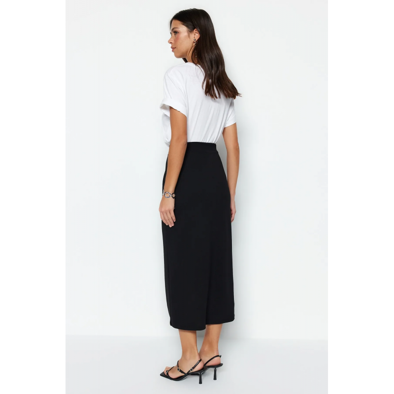 ✅ تنورة طويلة ترينديول ماكسي محبوكة بخصر مرتفع ومخططة للنساء لون أسود