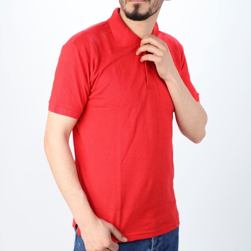 ✅ تيشيرت بتصميم بولو بأكمام قصيرة للرجال لون أحمر.