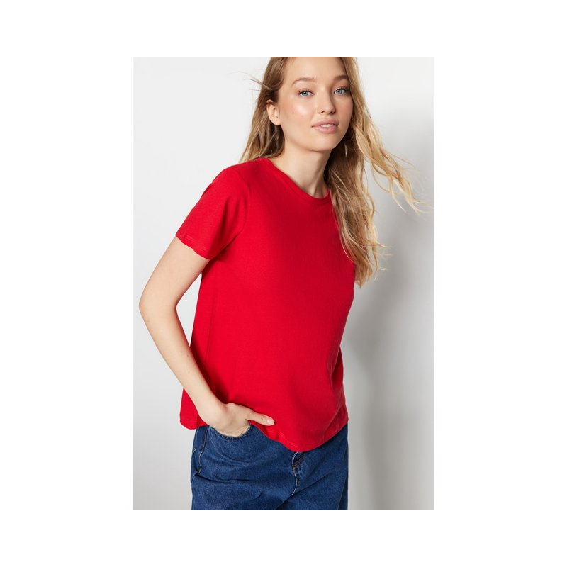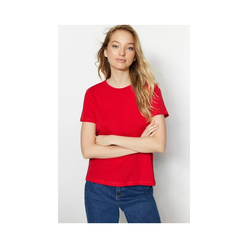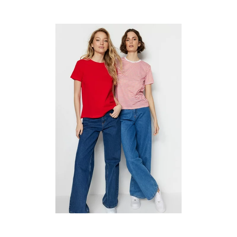 ✅ تيشيرت ترينديول بأكمام قصيرة عدد 2 للنساء لون أحمر وأحمر مخطط