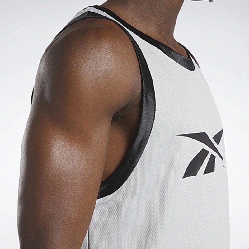 A MINIMALIST BASKETBALL TANK TOP FOR EVERYDAY WEARA comfortable look you can rock off the court. This men’s Reebok tank top takes cues from a basketball jersey, made of soft and breathable mesh to let you move freely. Tricot on the trim feels soft and smooth to the touch.