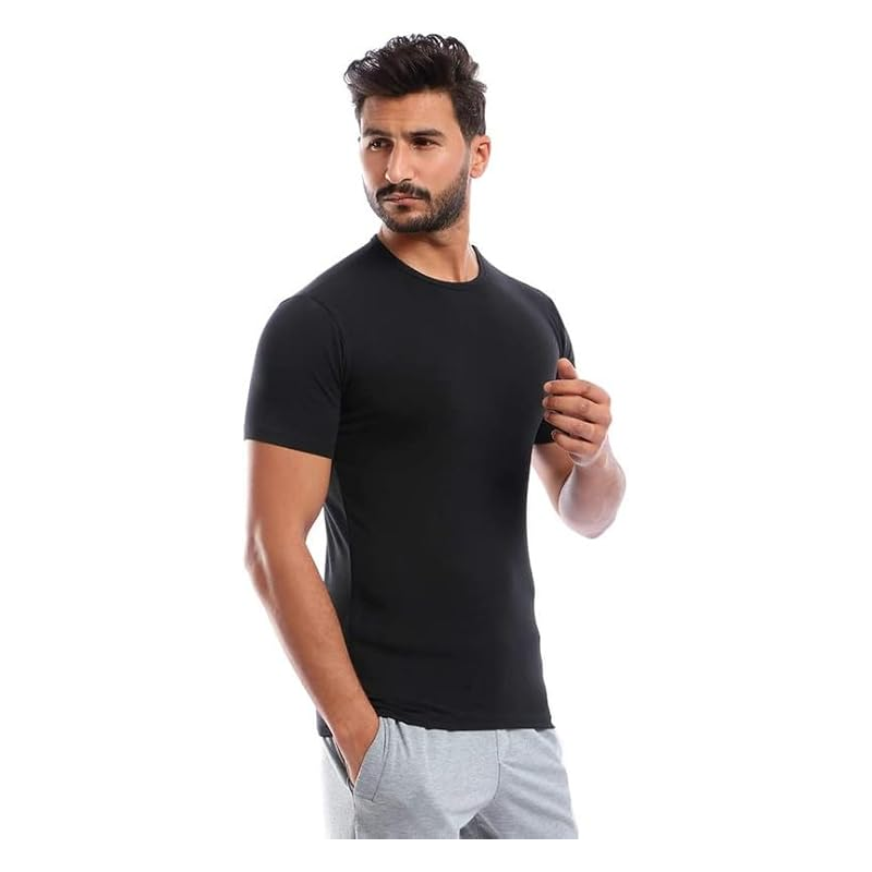 تيشيرت داخلي نص كم قطن ستريتش من قطونيل للرجال لون اسود- Cottonil Cotton Stretch Half Sleeve O- Black