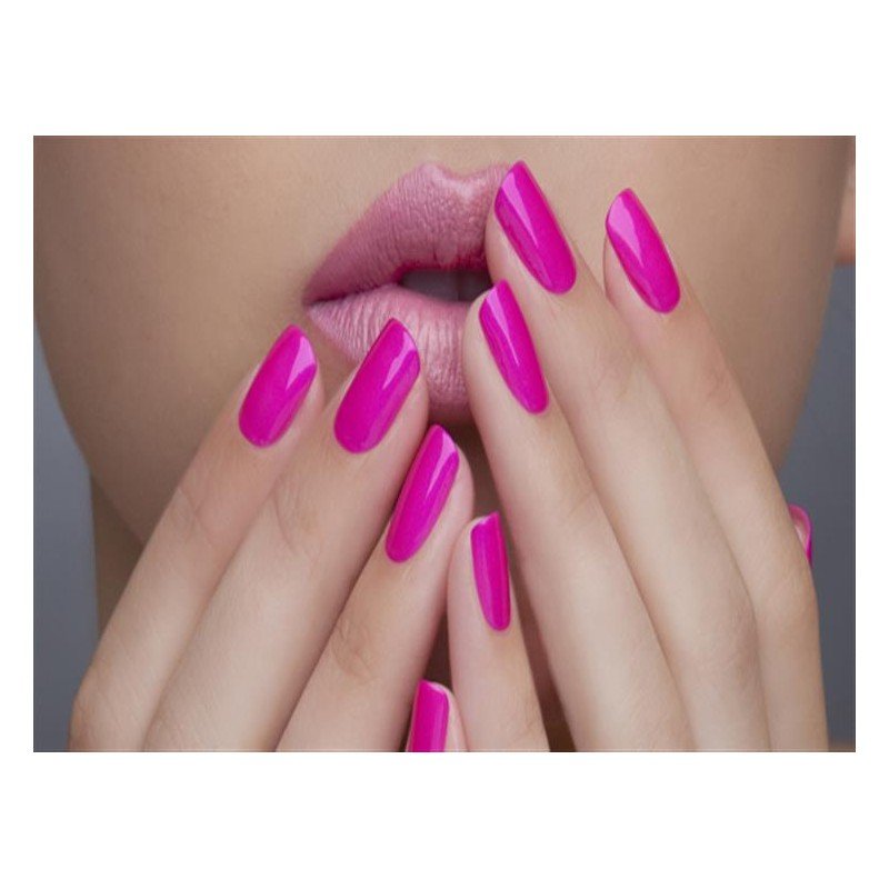مناكير اظافر لون فوشي فاقع مع تغطية كاملة دون لمعان