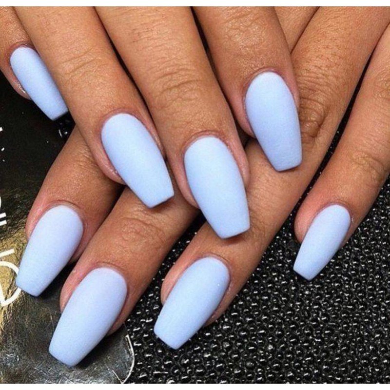 مناكير اظافر باللون سكني او الرمادي المزرق او من درجات الفوشي الغامق مع تغطية كاملة واضاءة جميلة