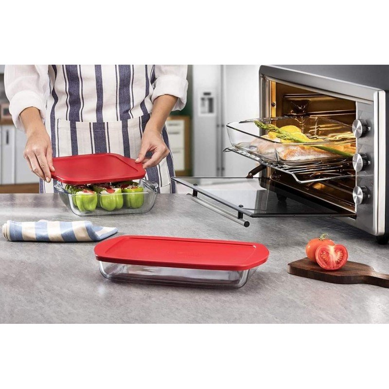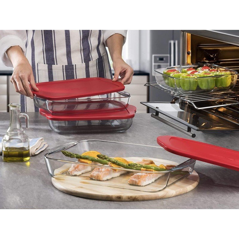 مادة بايركس عالية الجودة: مصنوع من الزجاج المقاوم للحرارة الذي يضمن لك استخدامًا طويلًا وآمنًا. لا يتفاعل مع الطعام ويحافظ على نكهته الأصلية.