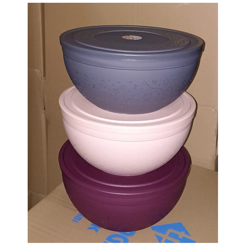 طقم مطربانات بلاستيك بغطاء لف عدد 3 سعة (280 مل ،500 مل، 800 مل)