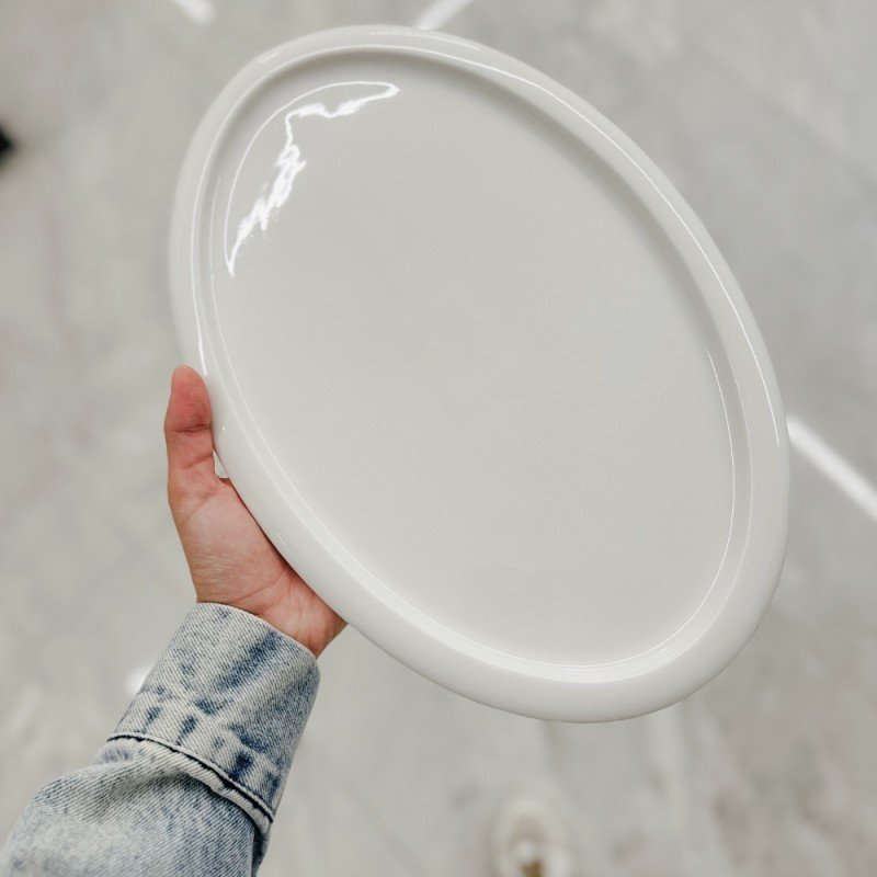 ✅جاط بورسلان بيضاوي. ✅اللون: أبيض. ✅الحجم:32.5*22*1.5. ✅مصنوع من مواد غذائية غير ضاره يستخدم لتقديم الطعام والضيافه ومتعددة الاستخدام.