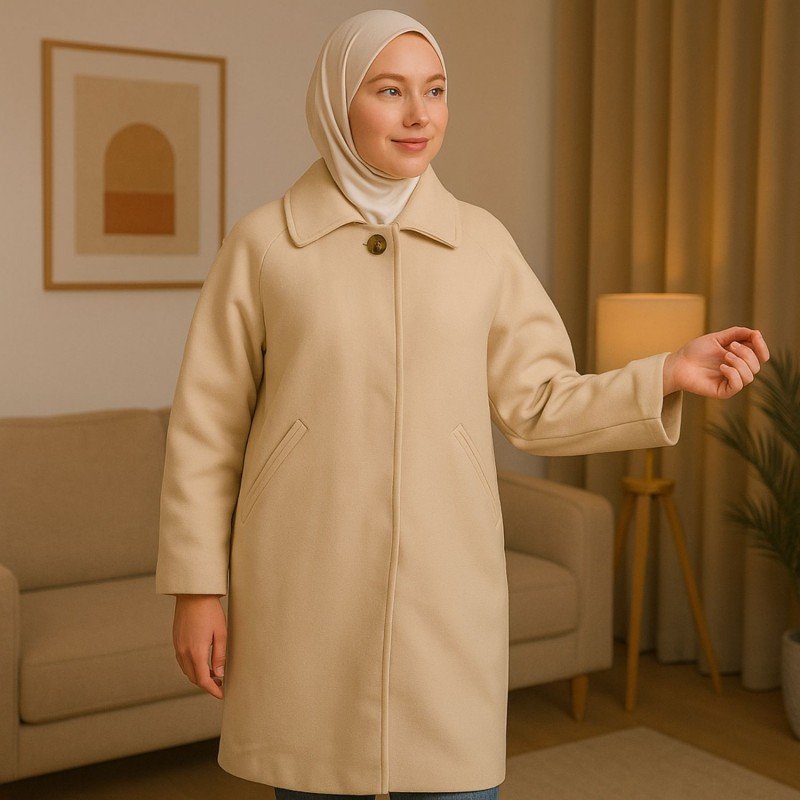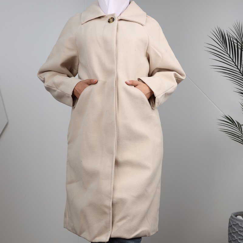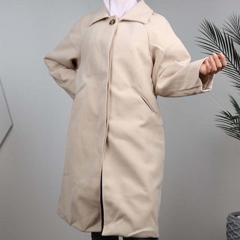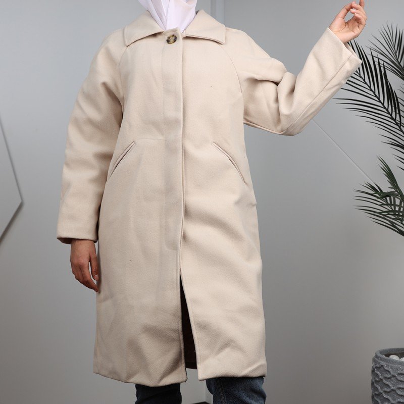 ✅جاكيت جوخ شتوي للنساء مبطن طويل مع أزرار مخفية .