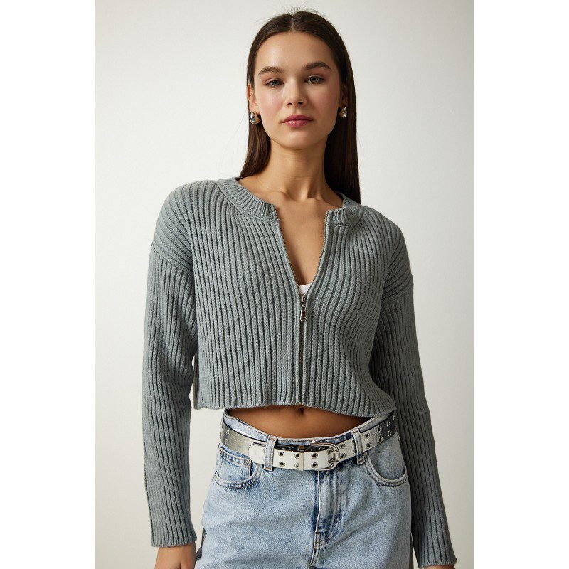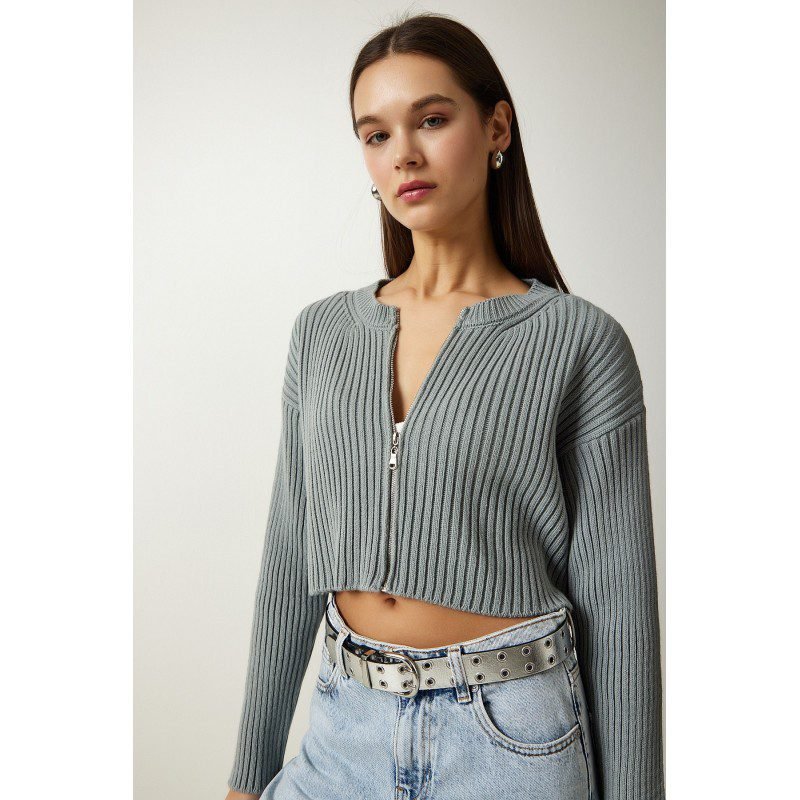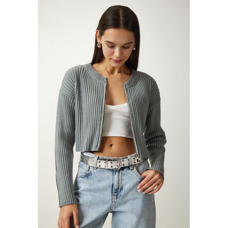 بلوزة صوف قصيرة باللون السكني