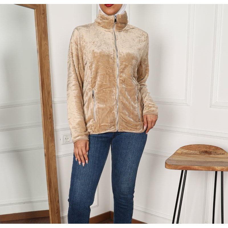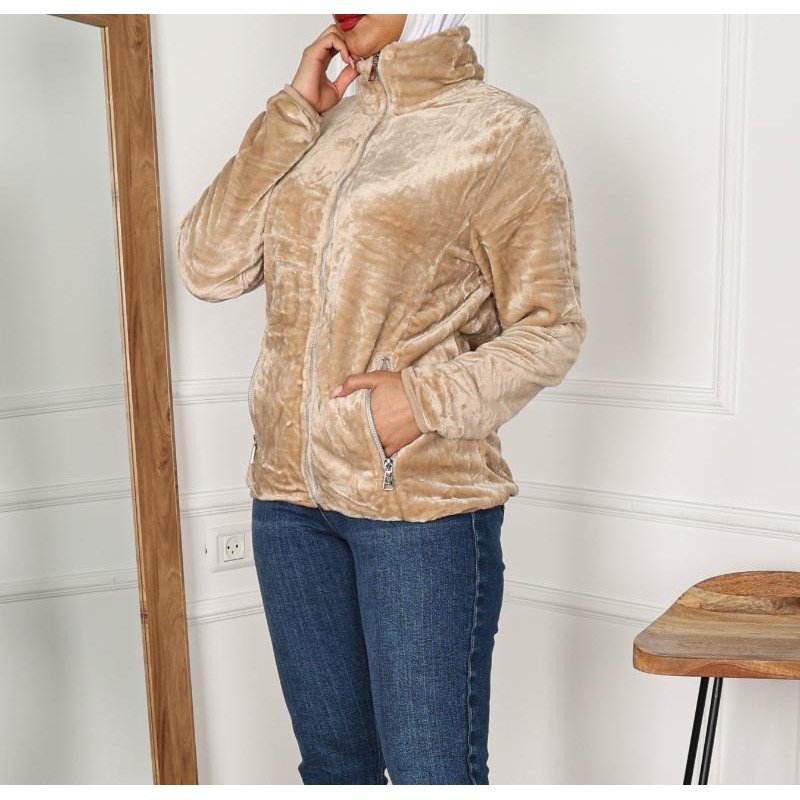 ✅ التصميم: جاكيت فرو مزود بسحاب أمامي، تصميم بسيط يناسب مختلف الإطلالات اليومية.
