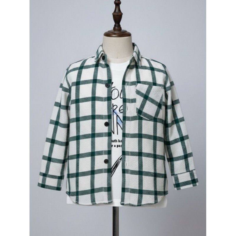 جاكيت ولادي بأزرار وأكمام طويلة للأطفال مقلم لون أخضر وأبيض