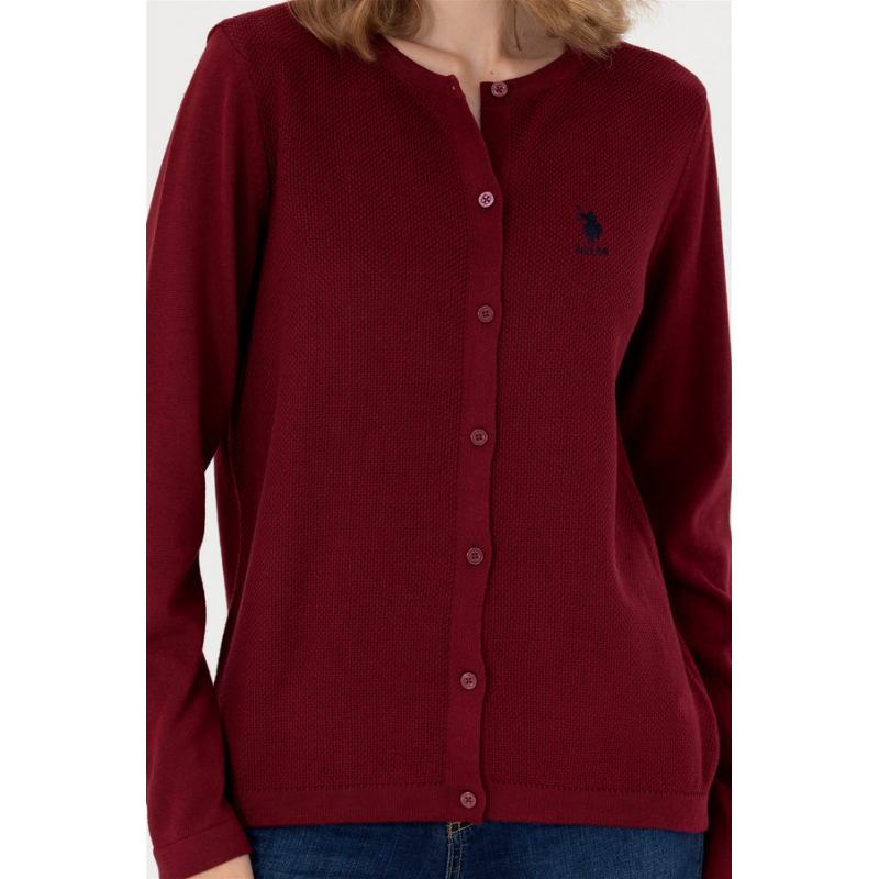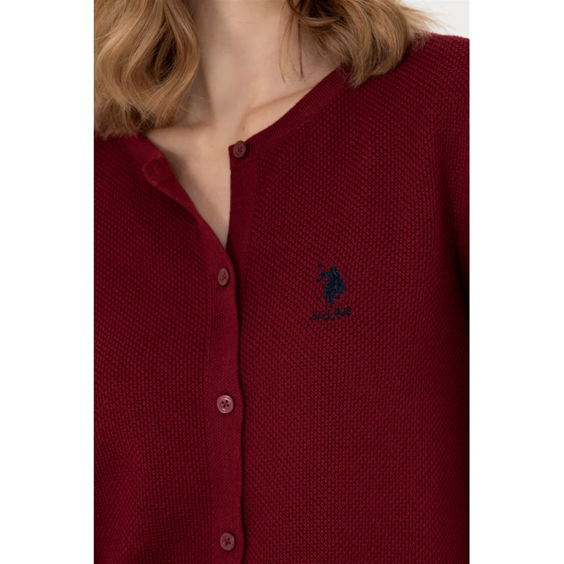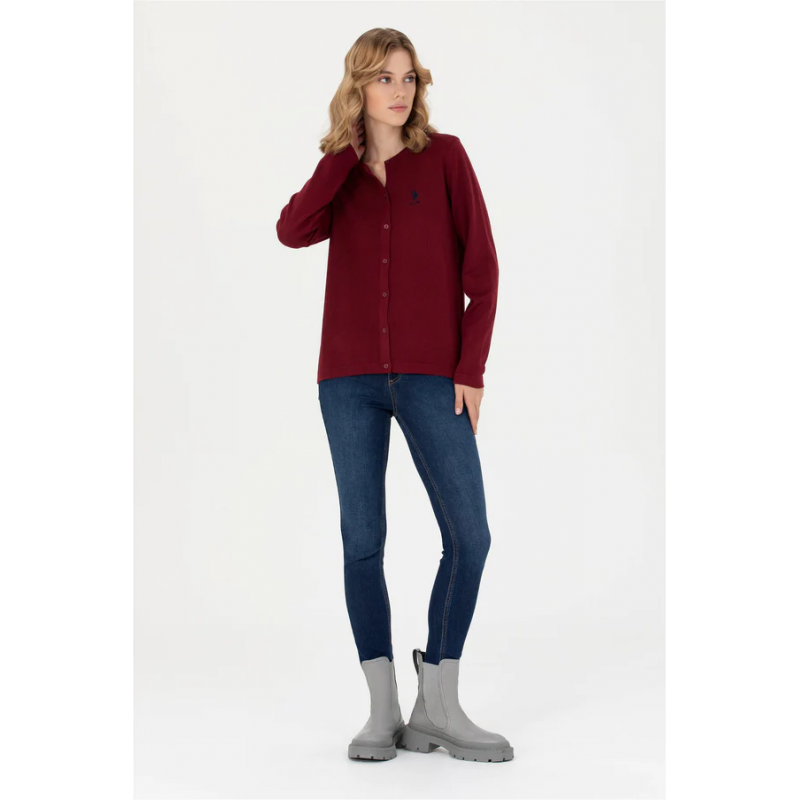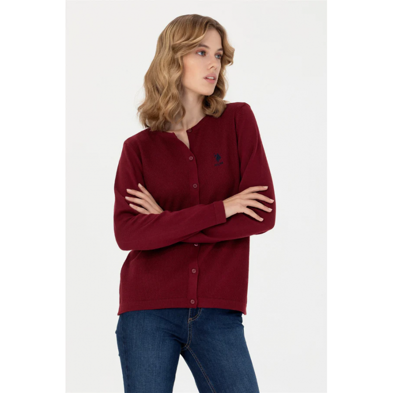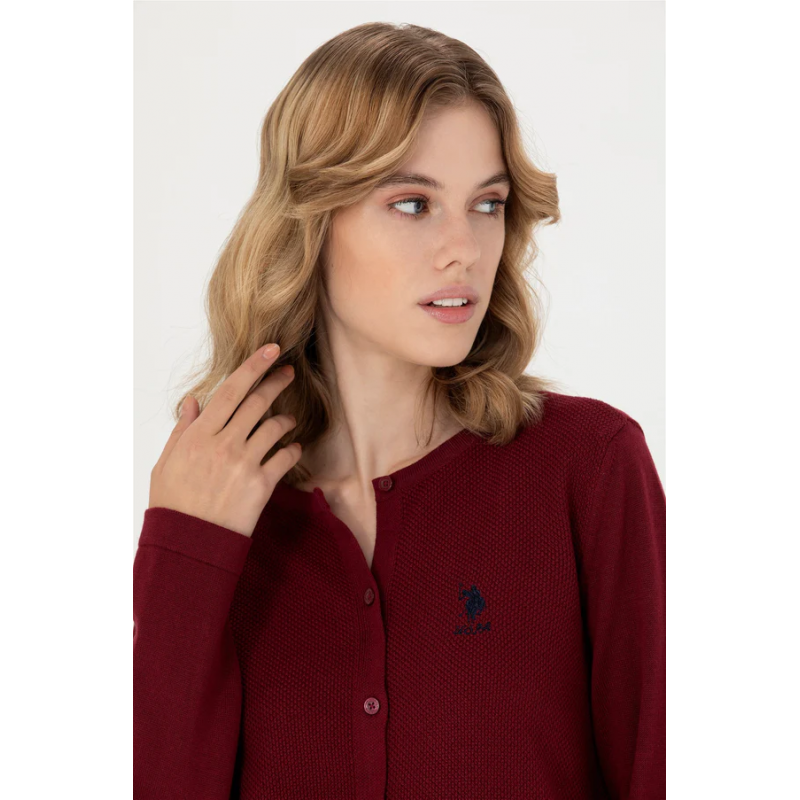 جاكيت يو اس اسنت بولو صوف بأزرار للنساء – سادة خمري