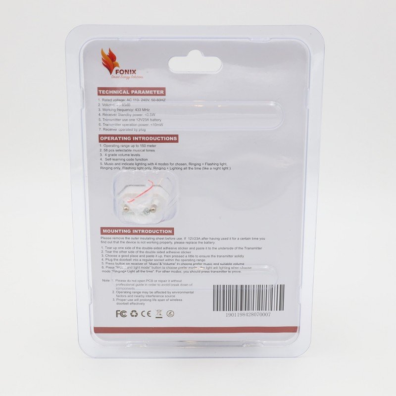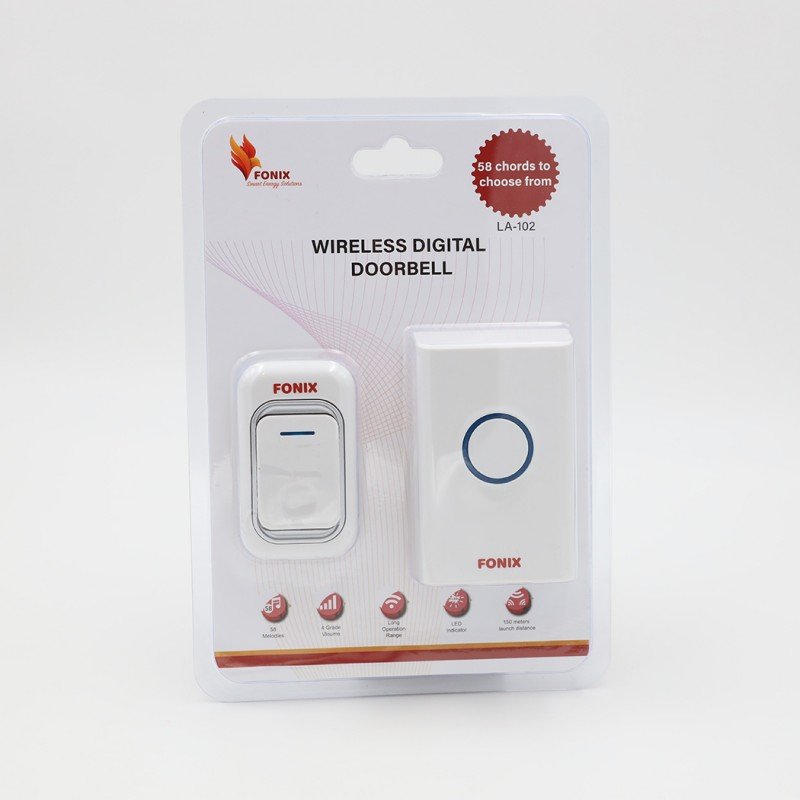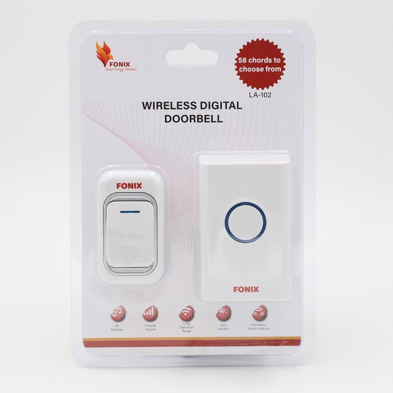 ✅ التصميم: جرس باب لاسلكي رقمي من “فونيكس” (Fonix)، يتميز بتصميم عصري وبسيط يناسب مختلف الأذواق. يأتي مع وحدة جرس الباب ووحدة استقبال كهربائية، مما يسهل عملية التثبيت.