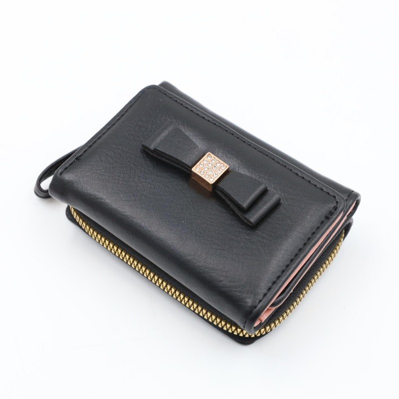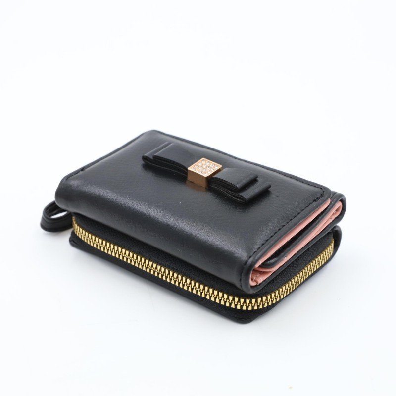 جزدان ستاتي جلد حجم صغير سحاب لون اسود