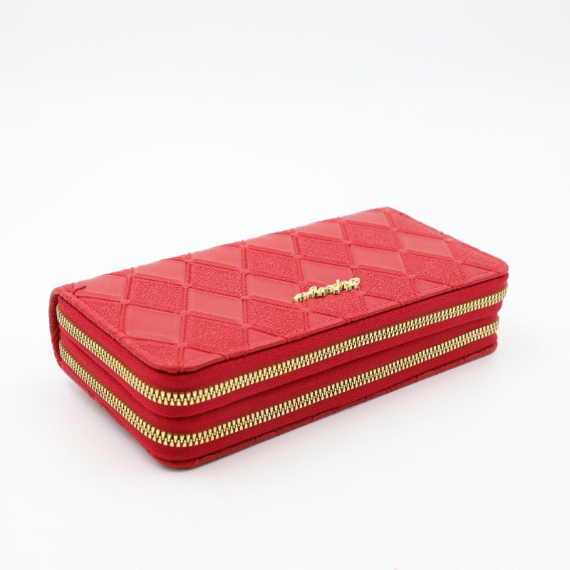 جزدان ستاتي أنيق بحجم كبير مصنوع من جلد ناعم عالي الجودة، يتميز بتصميم فاخر بنقشة مربعات ولمسة أنثوية جذابة. يأتي بسحاب متين يحيط بالجزدان بالكامل ليحافظ على المقتنيات بشكل آمن ومنظم.