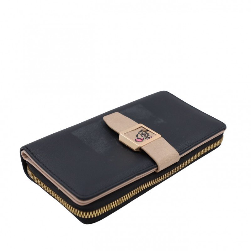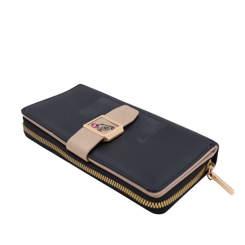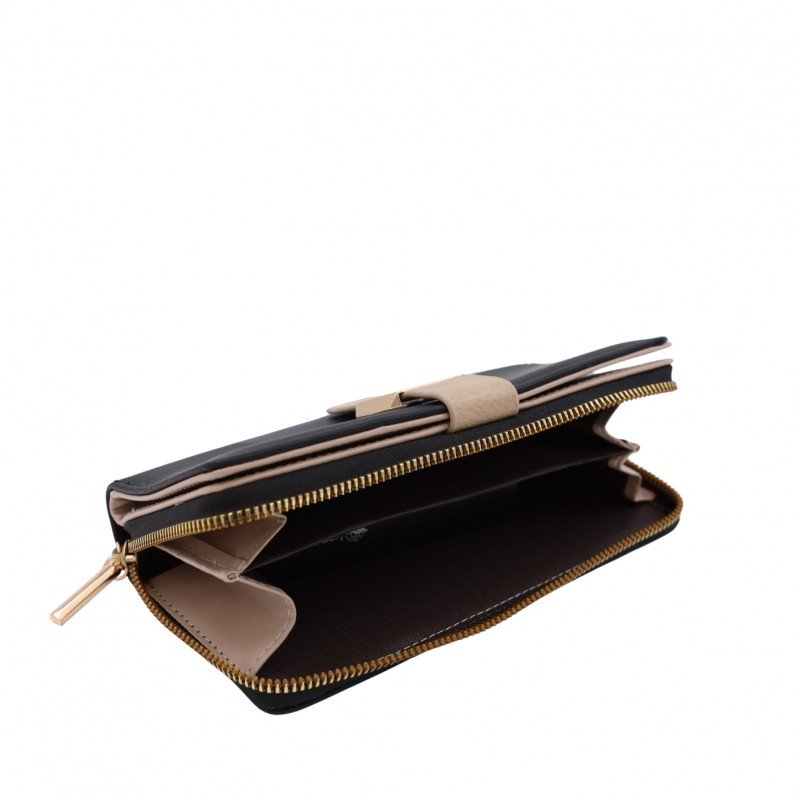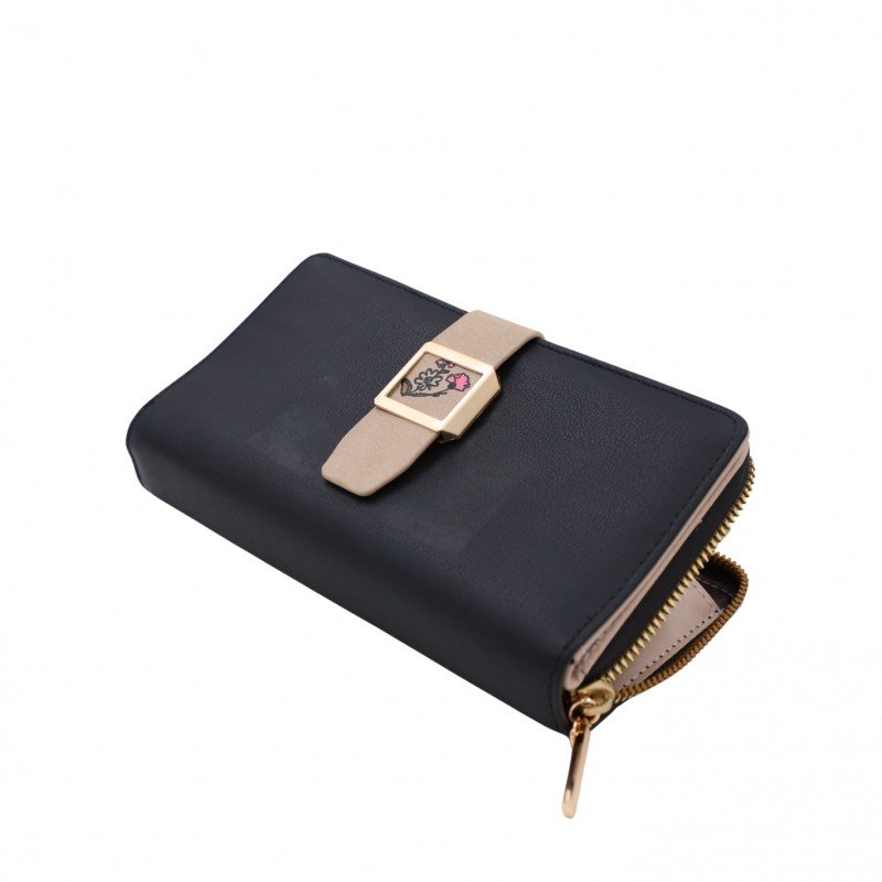 جزدان ستاتي حقيبة ستاتية كبس مع سحاب واحد – مناسب لوضع بطاقات العمل والنقود – لون أسود