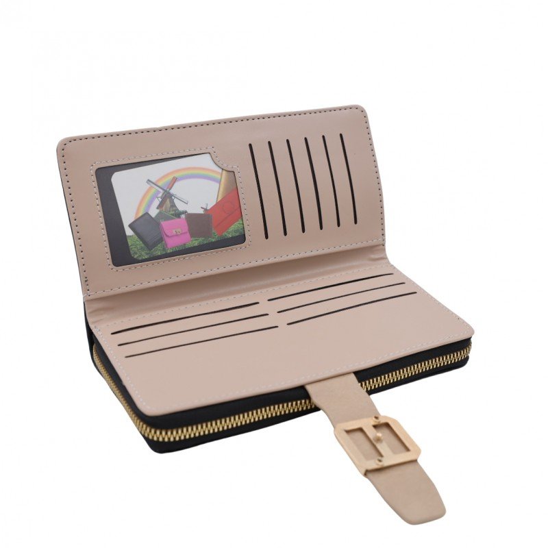 جزدان ستاتي حقيبة ستاتية كبس مع سحاب واحد – مناسب لوضع بطاقات العمل والنقود – لون بيج فاتح
