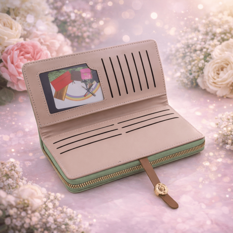 جزدان 19 * 10 سم لون أخضر ✅جزدان كبير مميز للصبايا ✅كبس مع سحاب واحد ✅مناسب لوضع بطاقات العمل والنقود ✅ اللون : أخضر فاتح.