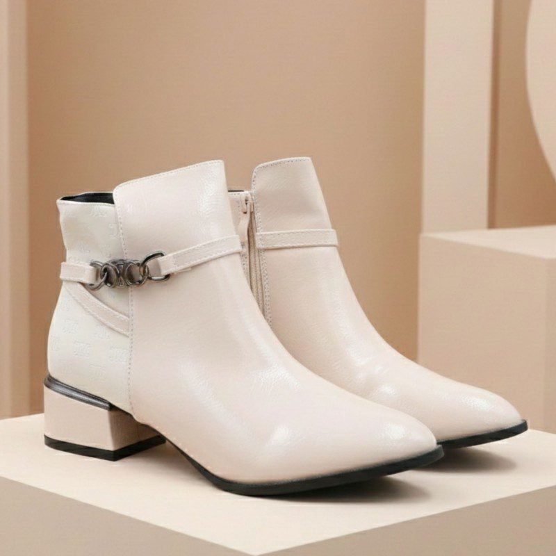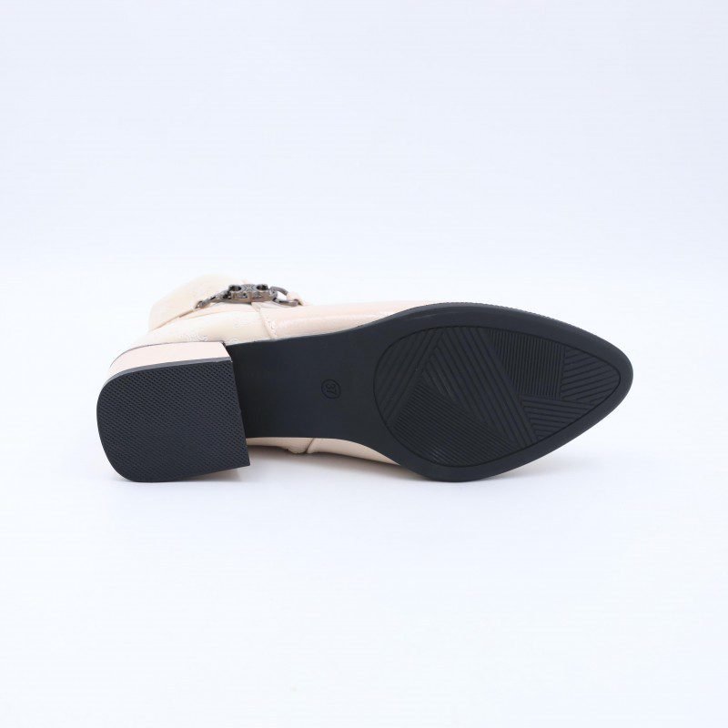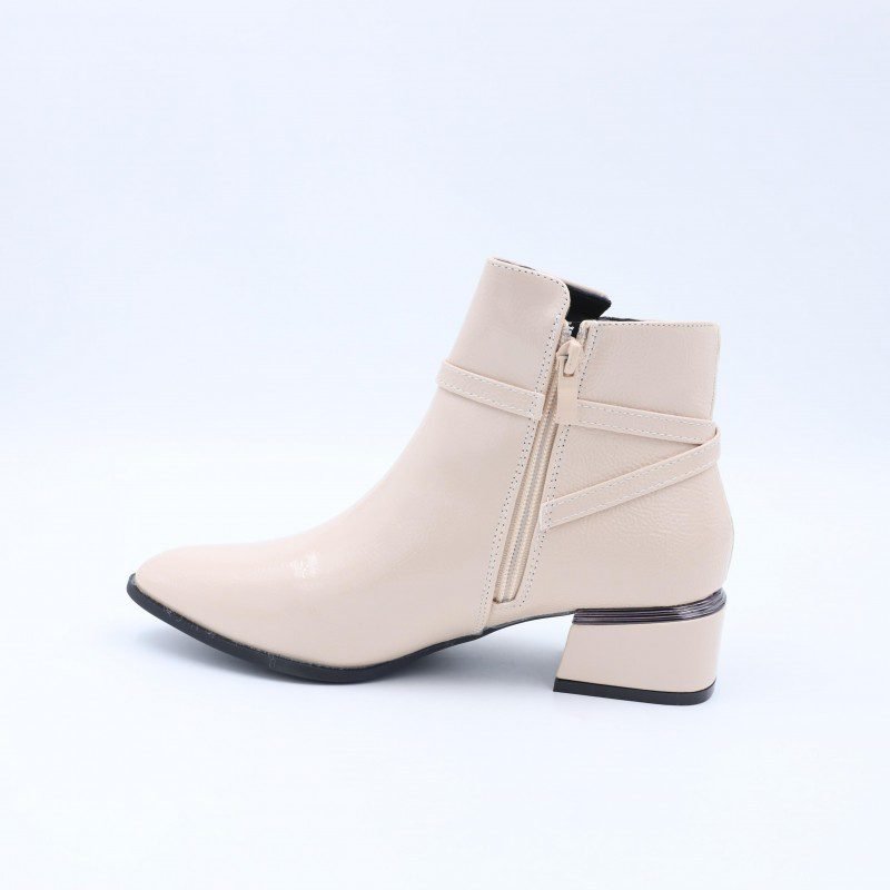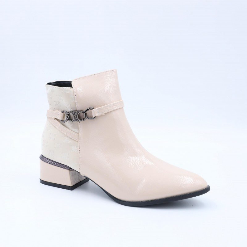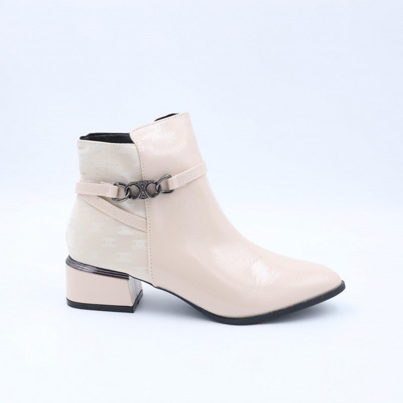 جزمة نسائية أنيقة بتصميم ساق متوسط الطول ولون أوف وايت يمنحها مظهرًا راقيًا وسهل التنسيق مع مختلف الإطلالات اليومية والرسمية الخفيفة. مصنوعة من خامة ناعمة بلمسة لامعة تضيف أناقة هادئة دون مبالغة.مزودة بسحاب جانبي عملي لسهولة الارتداء والخلع، مع تفصيلة حزام جانبي مزخرف تضيف لمسة أنثوية مميزة. الكعب متوسط الارتفاع يمنح ثباتًا وراحة أثناء المشي، والنعل متين ومناسب للاستخدام اليومي. خيار مثالي للنساء الباحثات عن الأناقة والراحة في تصميم واحد.