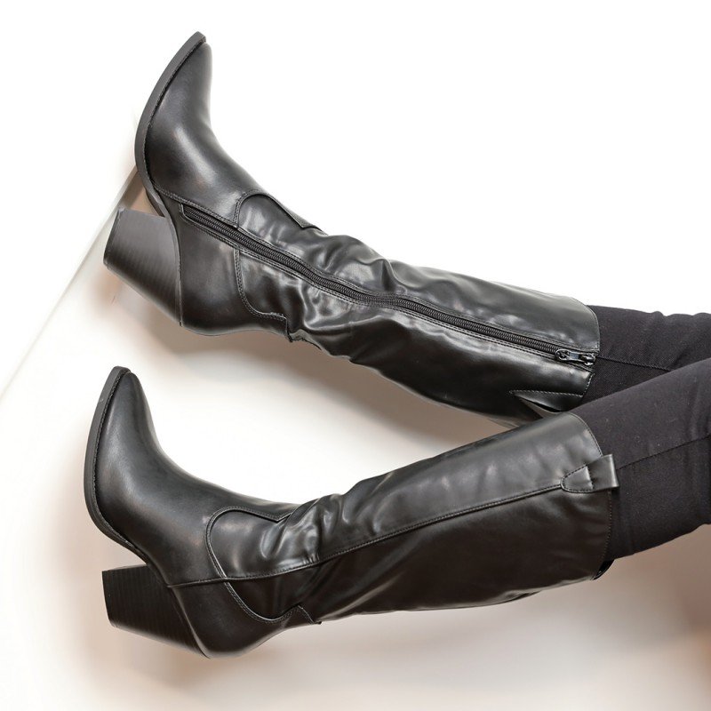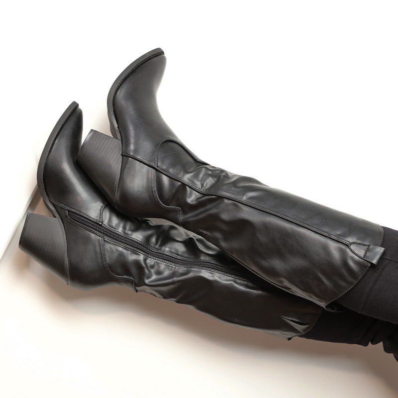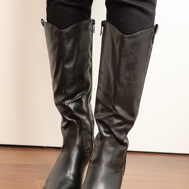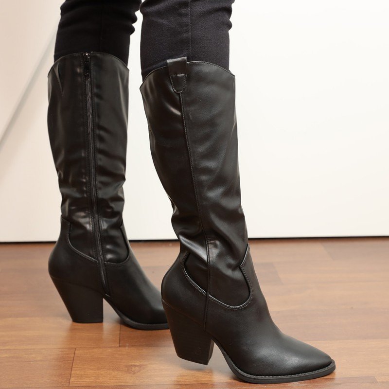 ✅ جزمة جلد بكعب ساق طويل لتحت الركبة للنساء