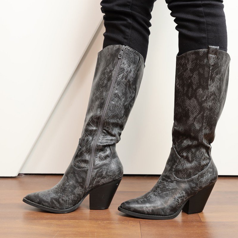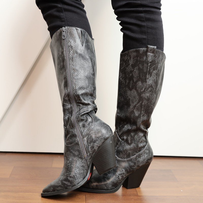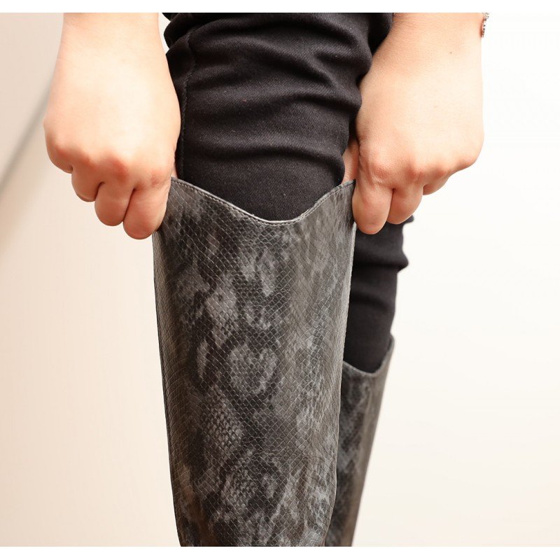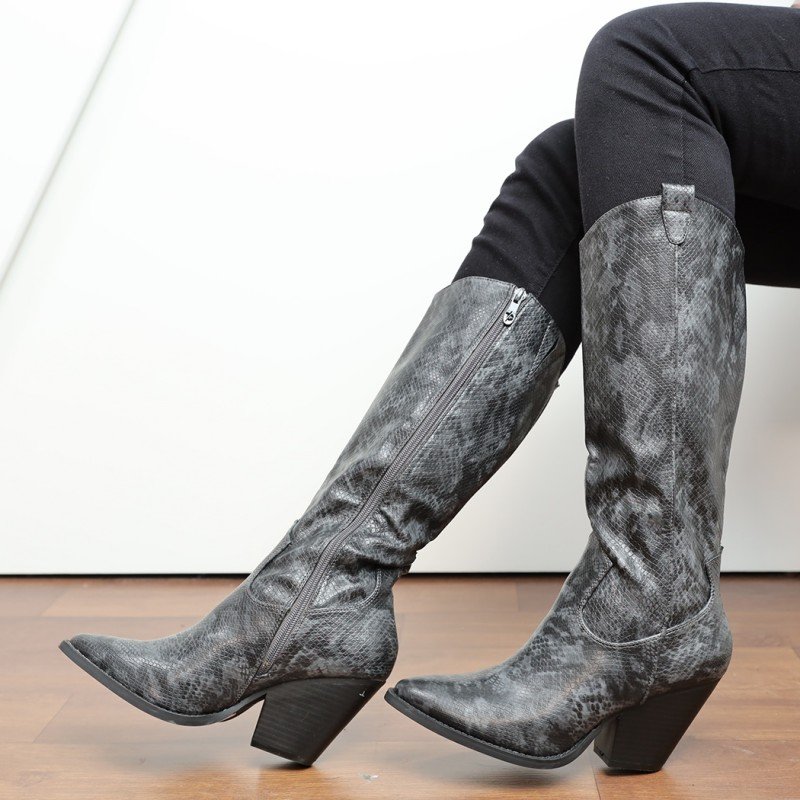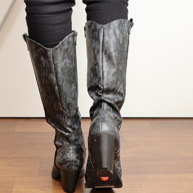 ✅ جزمة جلد بكعب ساق طويل لتحت الركبة للنساء