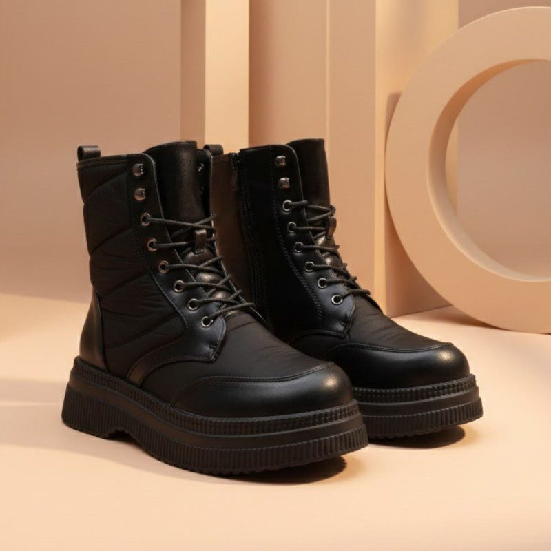 جزمة نسائية بتصميم ساق متوسط الطول تجمع بين الطابع العملي والمظهر العصري. مصنوعة من خامة متينة مع بطانة داخلية مريحة تساعد على الحفاظ على دفء القدم. تتميز برباط أمامي يتيح تثبيتًا جيدًا للقدم، مع سحاب جانبي لسهولة الارتداء والخلع. النعل السميك يوفر ثباتًا أثناء المشي ويجعلها مناسبة للاستخدام اليومي والمشاوير الطويلة. خيار عملي للطقس البارد، سهل التنسيق مع الإطلالات الكاجوال المختلفة.
