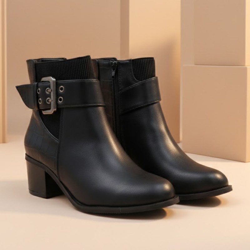 جزمة نسائية أنيقة ساق متوسط الطول يناسب مختلف الإطلالات اليومية والعملية. مصنوعة من خامة متينة بملمس ناعم مع تفاصيل خلفية تضيف لمسة عصرية دون مبالغة. تتميز بكعب عريض ثابت يوفر راحة وثبات أثناء المشي، إضافة إلى سحاب جانبي يسهل الارتداء والخلع. خيار عملي مناسب للعمل، الخروج اليومي، والمشاوير الطويلة، مع مظهر أنيق وسهل التنسيق مع الملابس المختلفة.