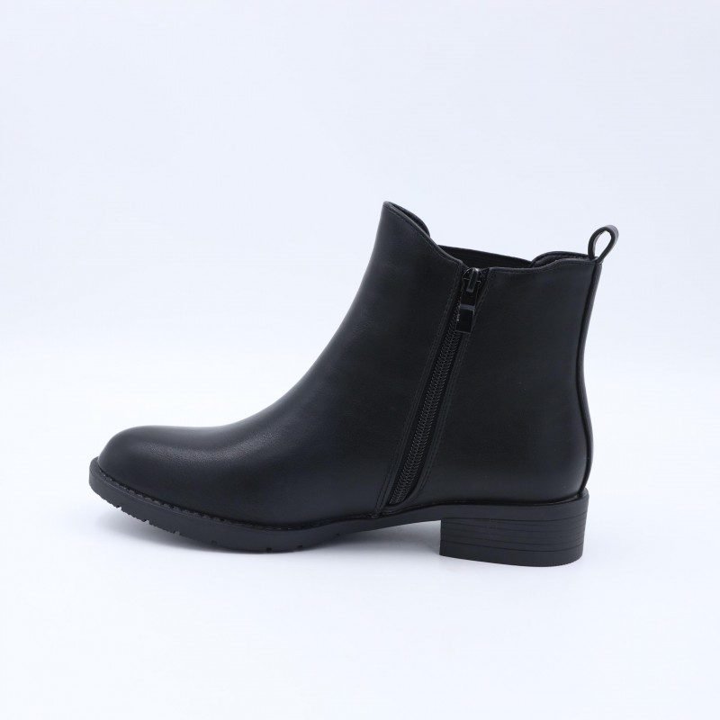 جزمة نسائية كعب قصير بسحاب بتصميم متوسط الطول لون أسود