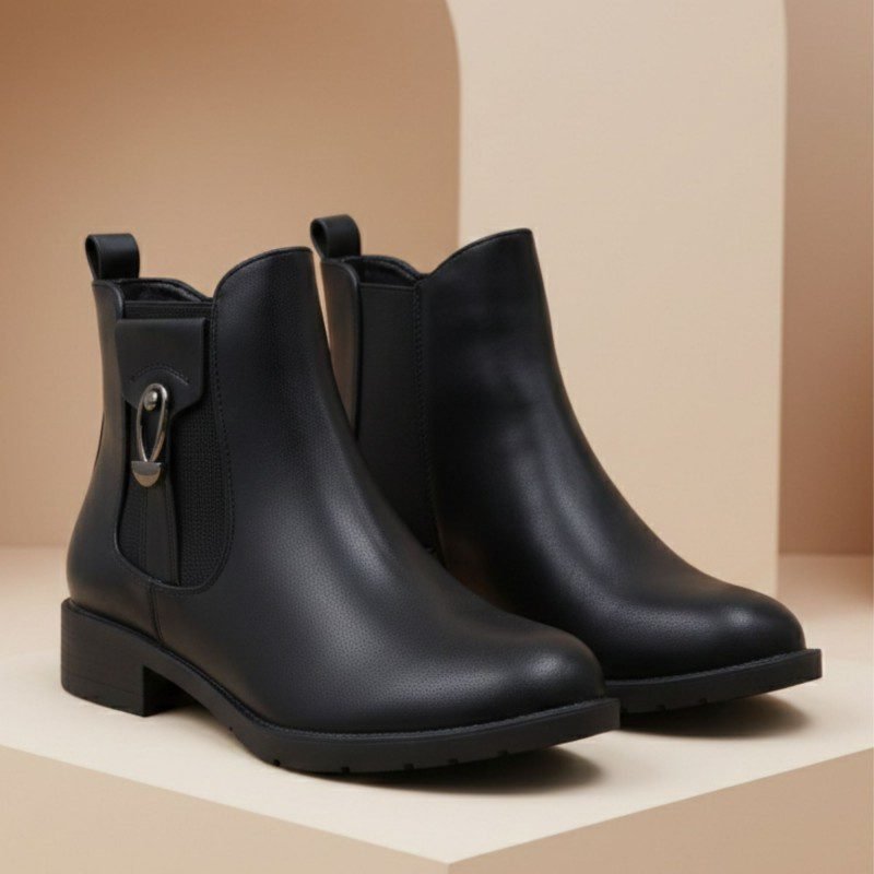 جزمة نسائية أنيقة بتصميم متوسط الطول وكعب قصير يمنح ثباتًا وراحة أثناء المشي. تأتي باللون الأسود الكلاسيكي الذي يناسب مختلف الإطلالات اليومية والرسمية الخفيفة. مصنوعة من خامة ناعمة ومريحة تساعد على تثبيت القدم بشكل جيد.مزودة بسحاب جانبي لسهولة الارتداء والخلع، مع تفصيلة جانبية تضيف لمسة أنيقة دون مبالغة. النعل متين ومقاوم للانزلاق، ما يجعلها خيارًا عمليًا للاستخدام اليومي والعمل والخروج. تجمع بين الراحة والشكل الأنيق في تصميم واحد.