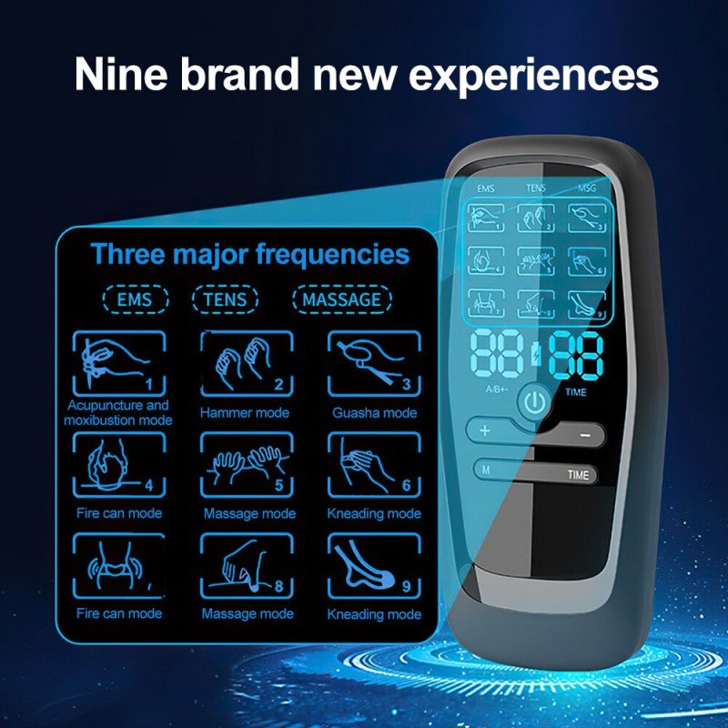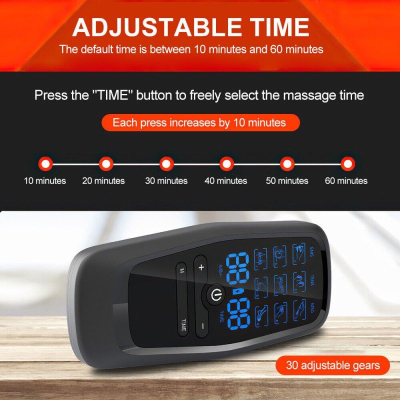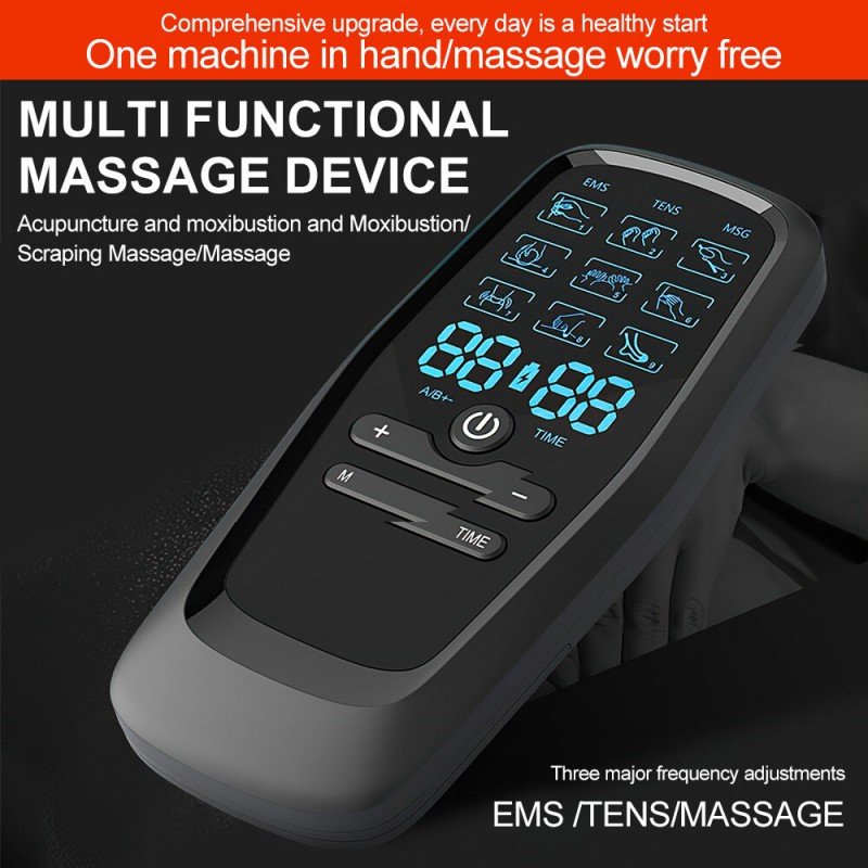 جهاز تحفيز العضلات الكهربائي EMS ذات شاشة LCD و6 مستويات مساج – خفيف الوزن ومحمول – مع 10 لزقات