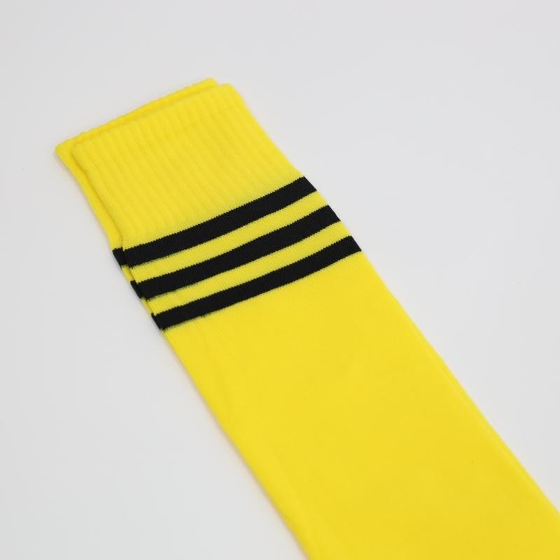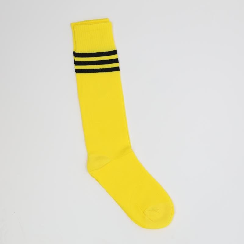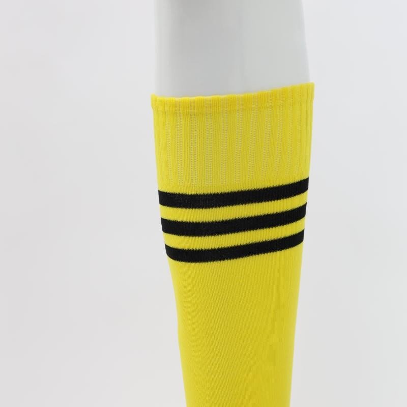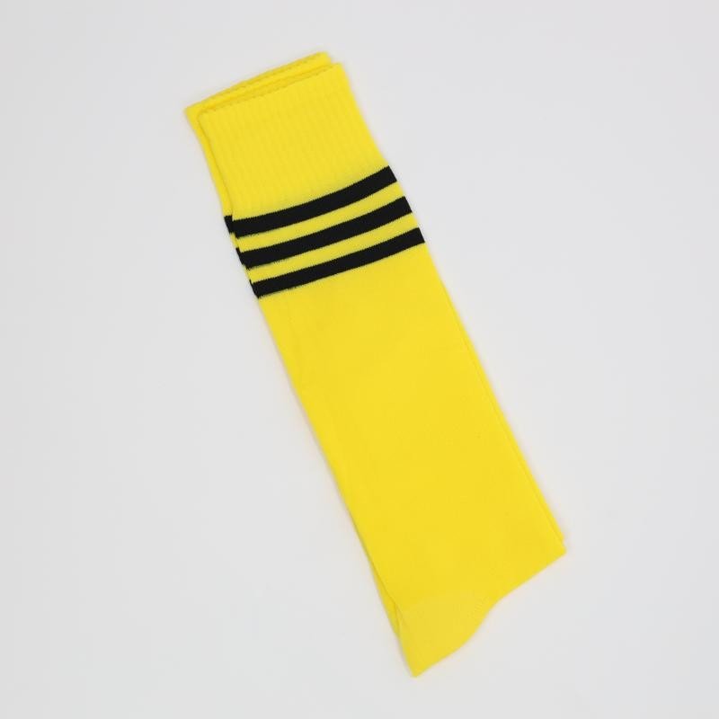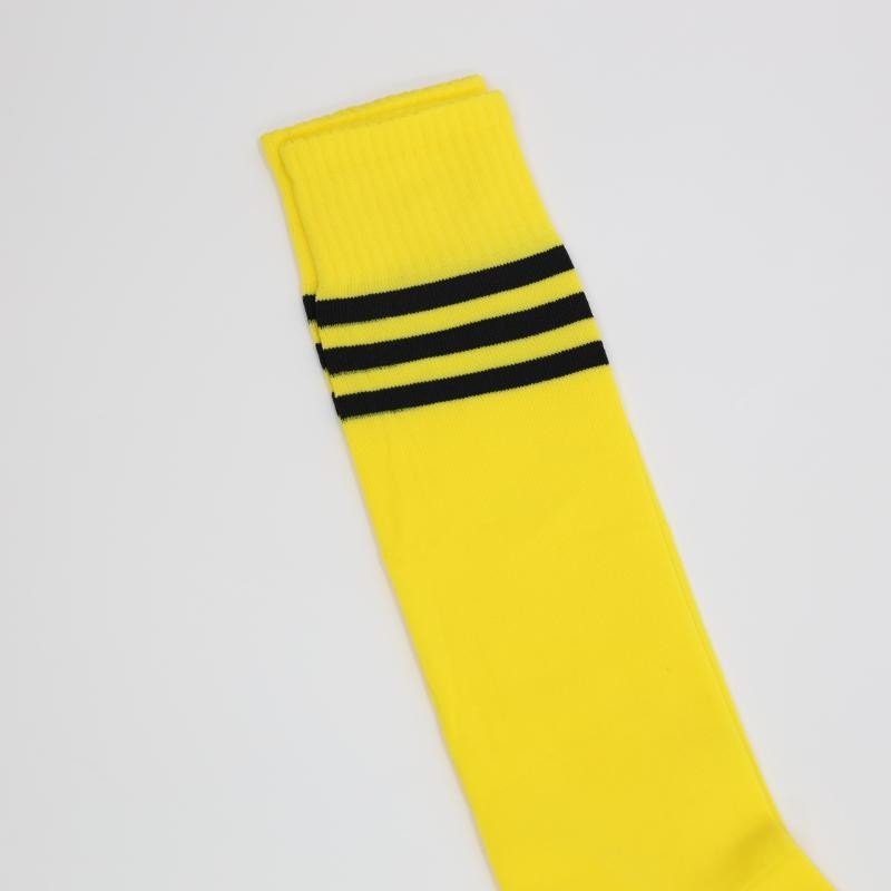 جوارب كرة قدم رياضية طويلة للشباب لون أصفر مخطط أسود من أعلى