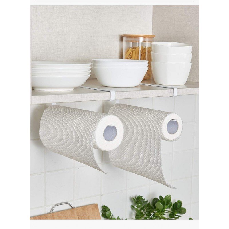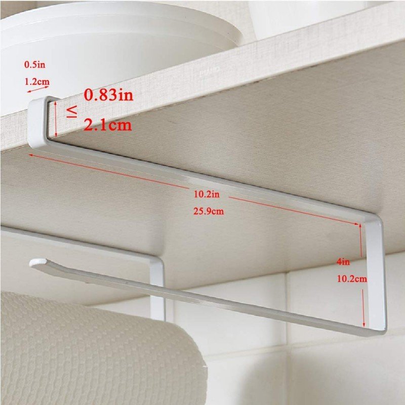 حامل منشفة ورقية (محارم مطبخ) يعلق تحت خزانة المطبخ || سهل التركيب دون الحاجة لثقب الجدار || يناسب سُمك الرفوف أقل من 3 سم. يرجى التأكد من ذلك. رائع للاستخدام في المناطق التي تكون فيها مساحة الطاولة محدودة مثل المطابخ وغرف النوم والمرائب وورش العمل وأكثر من ذلك| يحافظ على سطح العمل نظيفًا وأنيقًا متينة للاستخدام: مصنوعة من الحديد المعدني المطلي بالأبيض| ليس من السهل أن تصدأ بسهولة| وزن محمل جيد سهل التركيب: لا يتطلب أي تركيبات أخرى| لا تحتاج إلى تثبيتها على الحائط أو الخزانة| وتحمي أثاثك من التلف حرية الحركة: يمكنك تحريك حامل المناشف الورقية هذا في أي مكان تريده دون تقييد أو براغي أو حفر