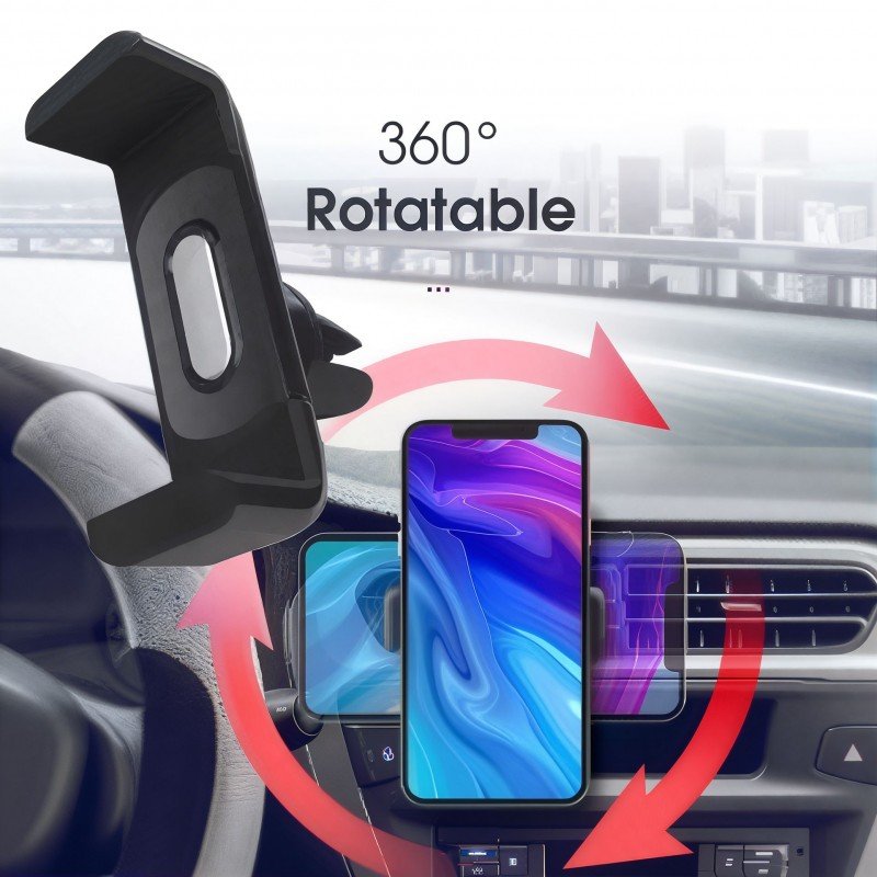 حامل هاتف صغير على مكيف السيارة ، قابل للتعديل وللدوران 360 درجة – لون أسود