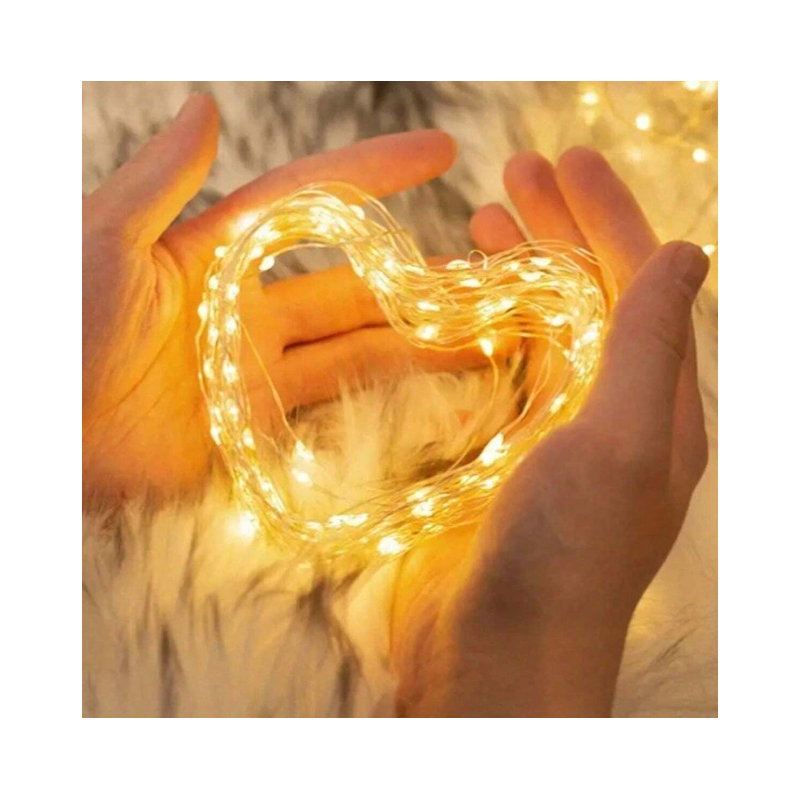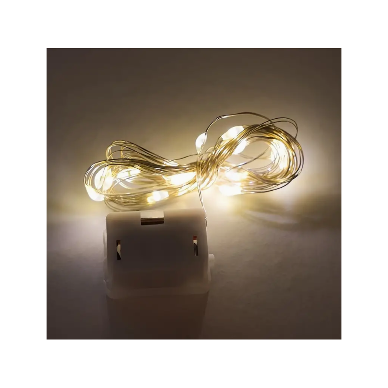 حبل إضاءة مع بطاريات لون أبيض مصفر