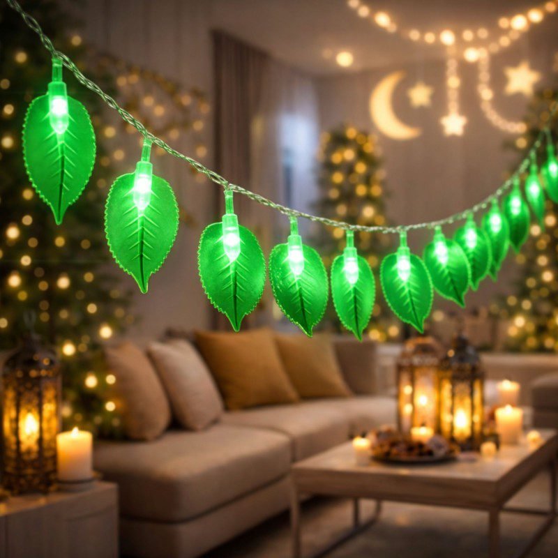 ✅حبل زينة اضاءة ليد على شكل أوراق شجر لون أخضر.