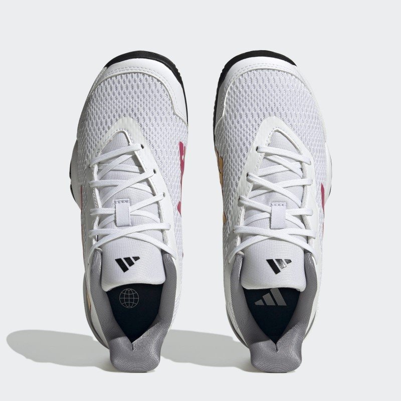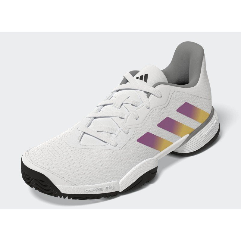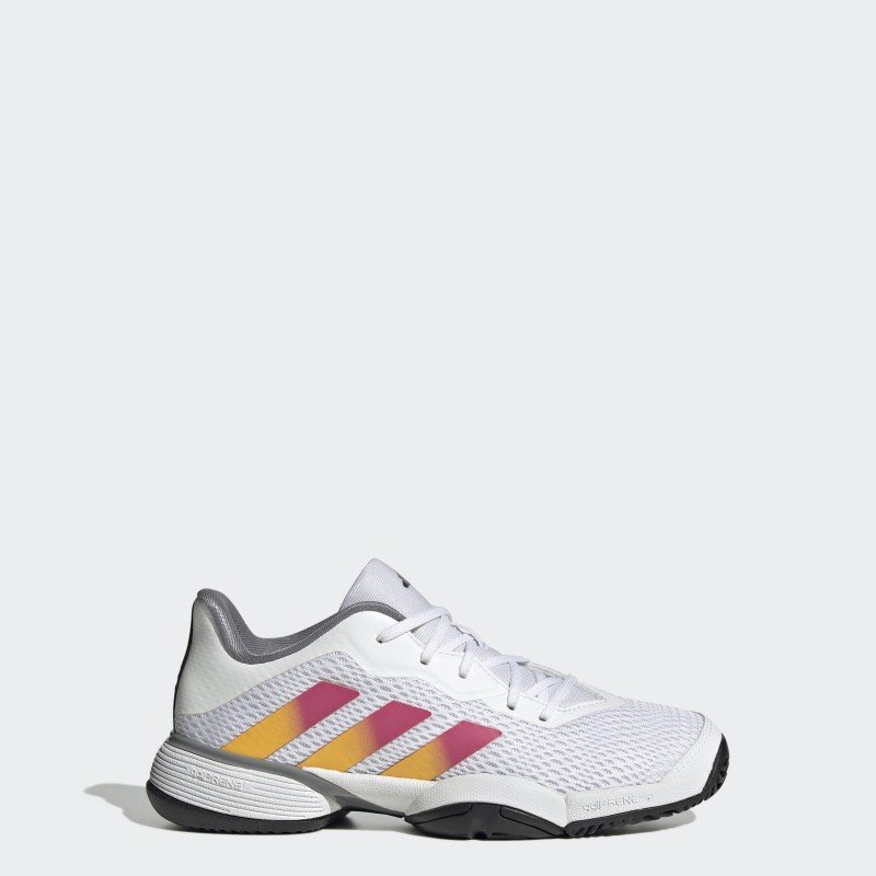 The perfect platform for hard court domination. These juniors’ adidas Barricade tennis shoes have an intuitive lacing system that locks you in by pulling down the tongue to match your foot shape. In the heel, a Geofit system helps you feel at one with your footwear. Underneath, a cushioned Adiprene midsole and Torsion System add comfort and stability. Made with a series of recycled materials, this upper features at least 50% recycled content. This product represents just one of our solutions to help end plastic waste.