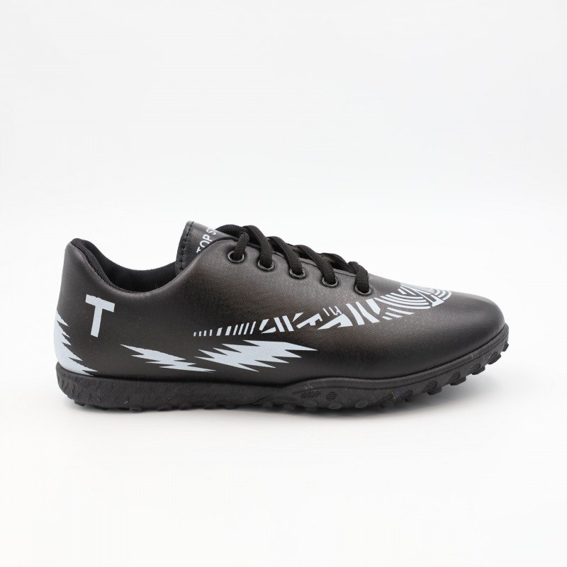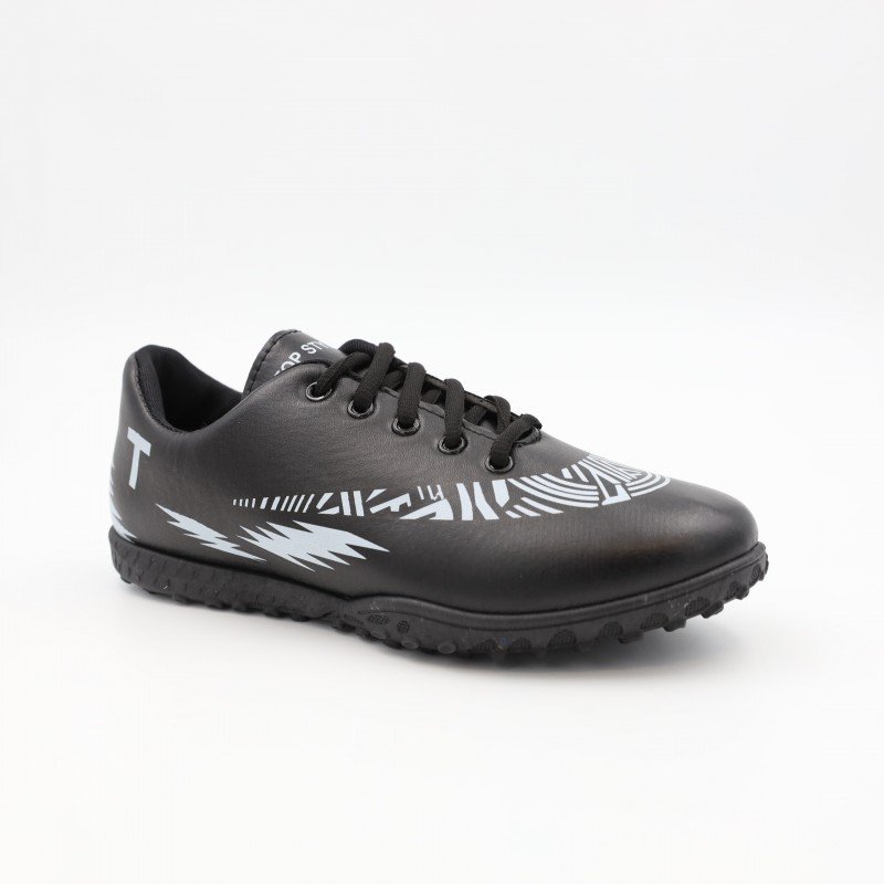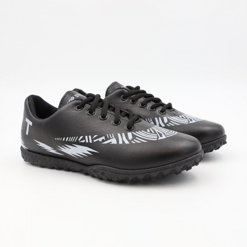 ✅ وصف المنتج:حذاء رياضي مخصص لكرة القدم باللون الأسود الكلاسيكي مع تصميم زخرفي أنيق باللون الأبيض، يمنحك مزيجًا من الأداء العالي والمظهر العصري على أرض الملعب.