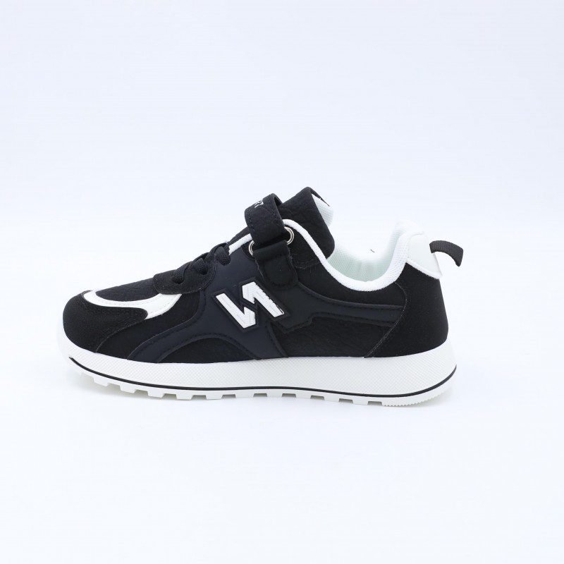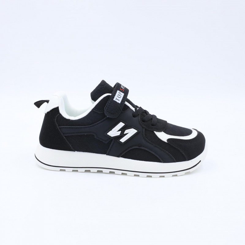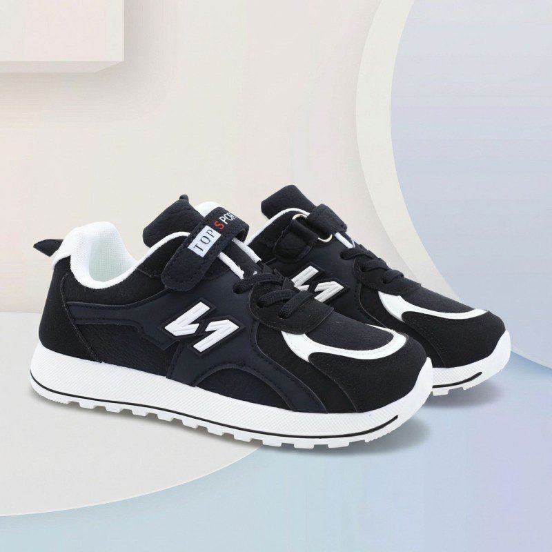 حذاء بتصميم رياضي مخصص للأولاد، يجمع بين اللون الأسود والأبيض ليمنح مظهرًا عمليًا وسهل التنسيق مع مختلف الملابس. مصنوع من خامات مريحة ومتينة تساعد على ثبات القدم وتوفير راحة مناسبة أثناء الحركة والاستخدام اليومي.النعل مبطن ومتين ليمنح ثباتًا جيدًا وامتصاصًا مناسبًا للصدمات أثناء المشي واللعب. مزود برباط مع حزام لاصق لسهولة الارتداء وتثبيت القدم بشكل مريح. خيار مناسب للمدرسة والأنشطة اليومية، يجمع بين المتانة والراحة والتصميم الرياضي.