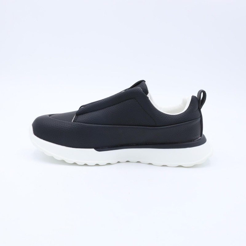 حذاء جلد بنعل مريح وعملي رياضي برباط وهمي لون أسود