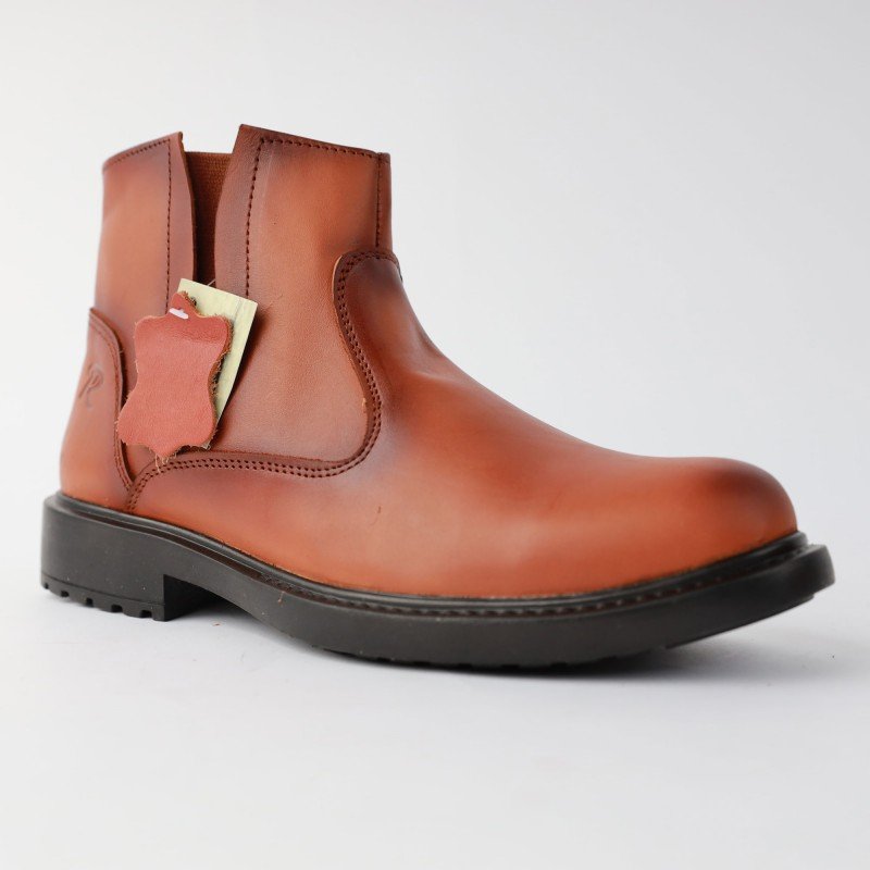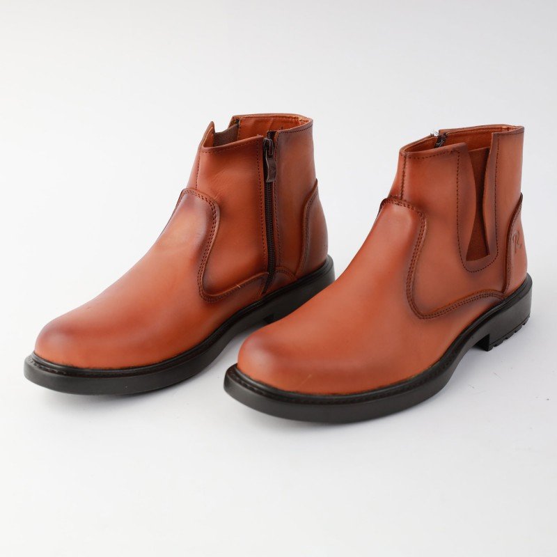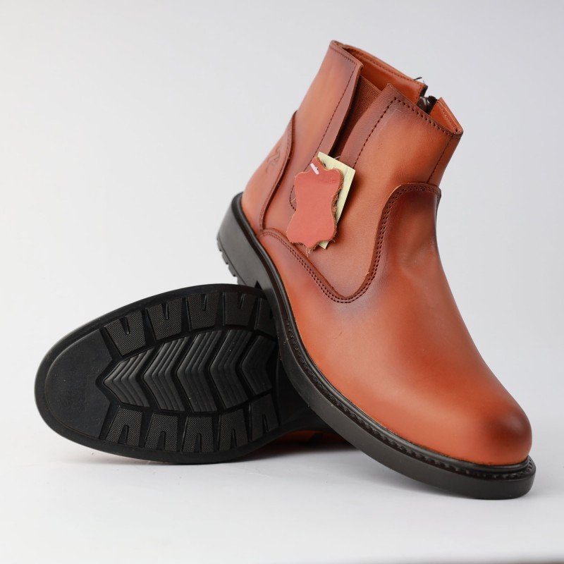 ✅ حذاء جلد رسمي كاحل متوسط الارتفاع لون عسلي