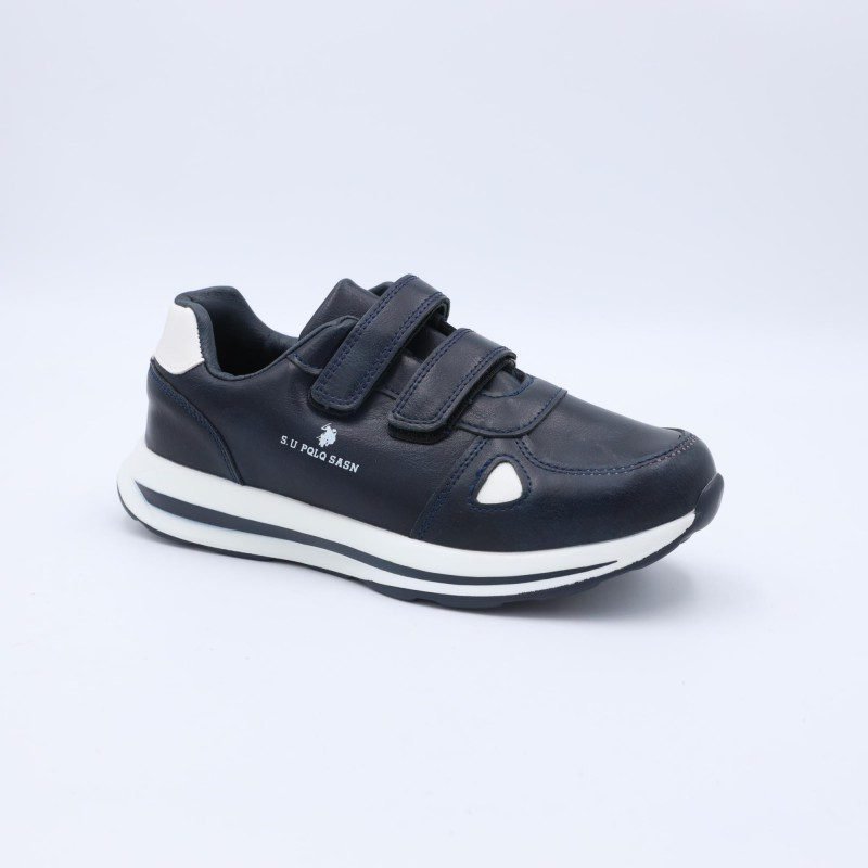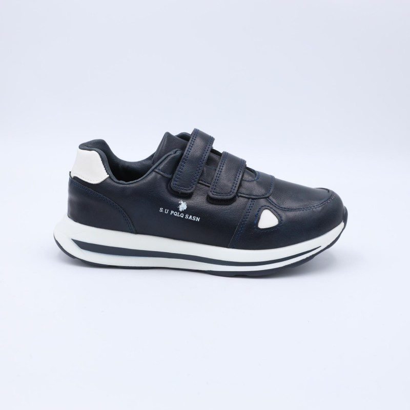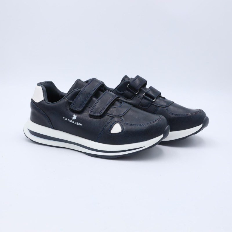 Be the first to review “حذاء جلد رياضي بشريطين لاصق لون كحلي وأبيض”