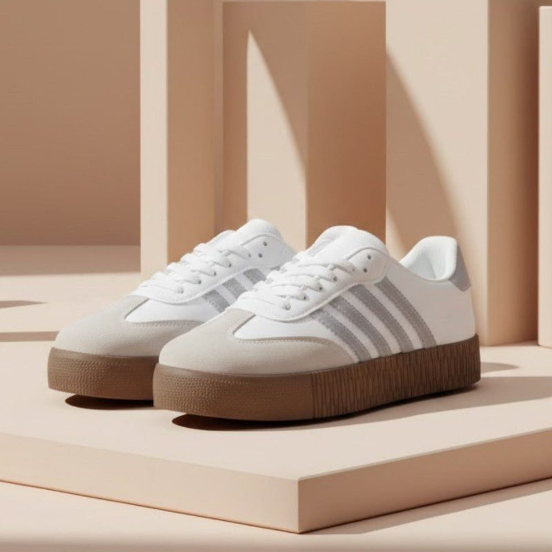 حذاء نسائي بتصميم رياضي كلاسيك يجمع بين الأناقة والراحة، مصنوع من خامة جلدية متينة تمنح مظهرًا أنيقًا وسهولة في التنظيف. يتميز بلون أبيض مع تفاصيل سوداء تضيف لمسة عصرية وسهلة التنسيق مع مختلف الإطلالات اليومية. النعل المطاطي بلون بني يوفر ثباتًا جيدًا أثناء المشي وراحة مناسبة للاستخدام اليومي. تصميمه العملي يجعله خيارًا مناسبًا للعمل، المشاوير، أو الإطلالات الكاجوال، مع إحساس بالراحة يدوم طوال اليوم.