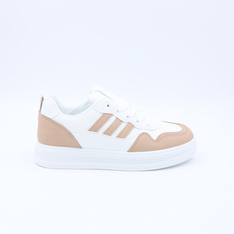 حذاء نسائي بتصميم رياضي كلاسيك يجمع بين الأناقة والراحة، مصنوع من خامة جلدية متينة تمنح مظهرًا أنيقًا وسهولة في التنظيف. يتميز بلون أبيض مع تفاصيل سوداء تضيف لمسة عصرية وسهلة التنسيق مع مختلف الإطلالات اليومية. النعل المطاطي بلون بني يوفر ثباتًا جيدًا أثناء المشي وراحة مناسبة للاستخدام اليومي. تصميمه العملي يجعله خيارًا مناسبًا للعمل، المشاوير، أو الإطلالات الكاجوال، مع إحساس بالراحة يدوم طوال اليوم.