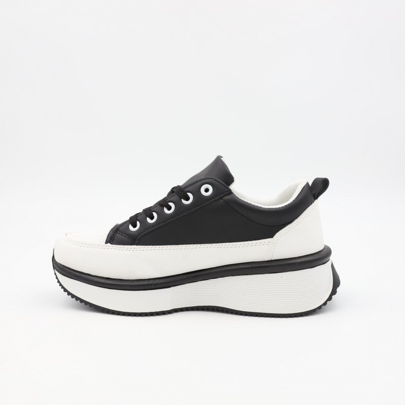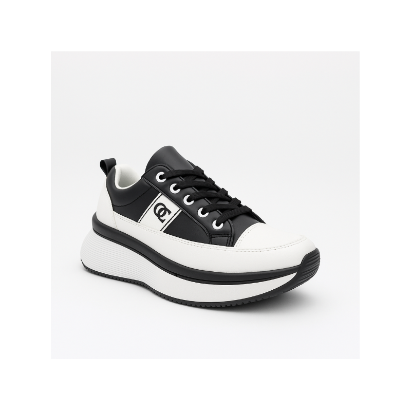 ✅ الحذاء يتميز بتصميم رياضي أنيق يجمع بين اللونين الأبيض والأسود، مما يضفي مظهرًا كلاسيكيًا وعصريًا في الوقت نفسه.✅ مصنوع من خامة جلدية عالية الجودة تضيف متانة ولمسة راقية.✅ النعل السميك باللون الأبيض مع تفاصيل سوداء يوفر دعماً ممتازاً وثباتاً أثناء المشي.✅ مزود بأربطة سوداء قابلة للتعديل مع عيون معدنية لتعزيز المتانة والمظهر الأنيق.✅ شعار جانبي بارز يضفي لمسة من التميز والهوية للحذاء.✅ تصميمه مريح وخفيف الوزن، مما يجعله مناسبًا للاستخدام اليومي والمناسبات الكاجوال.✅ الفئة المستهدفة: الشباب من الجنسين الذين يفضلون التصميمات الكلاسيكية ذات الطابع العصري والمريح للاستخدام اليومي.