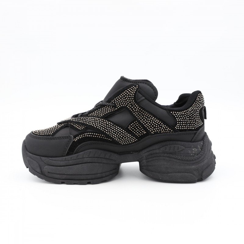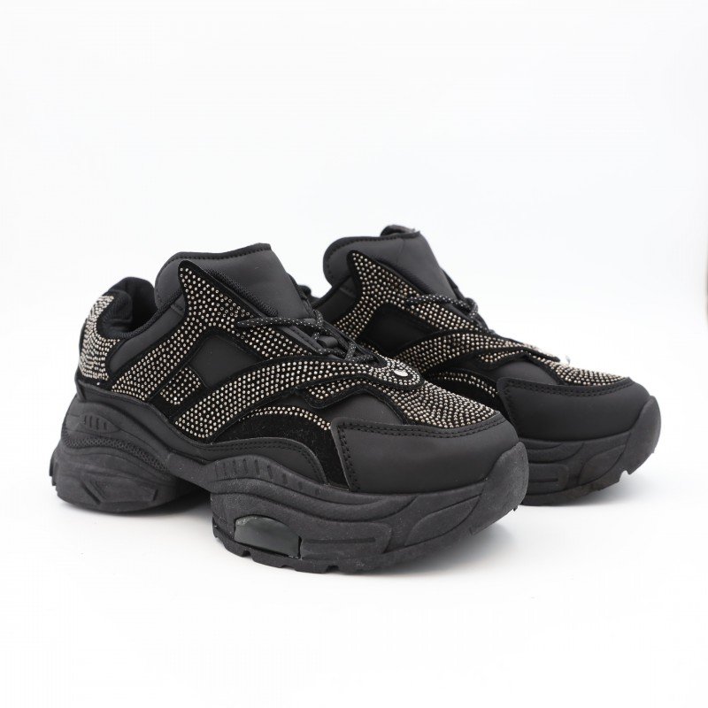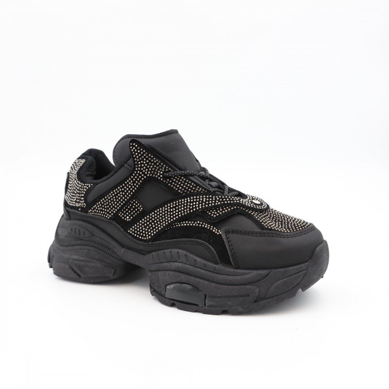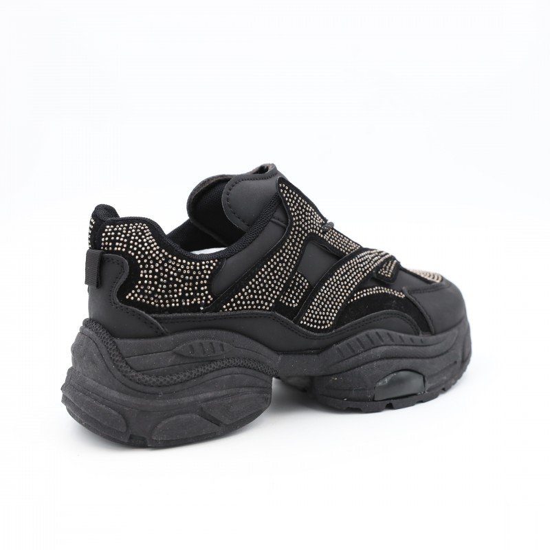 حذاء رياضي للنساء لون أسود مع أحجار زركون بيضاء