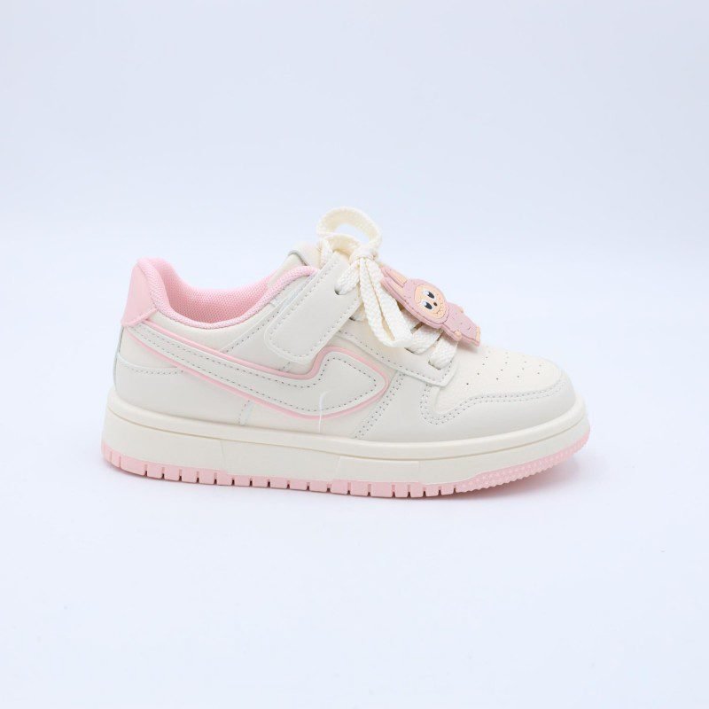 حذاء رياضي مع ستيكر لابوبو بشريط لاصق بناتي لون بيج وزهري