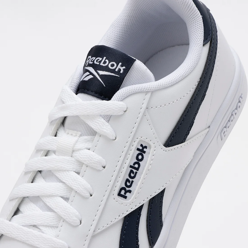 A TENNIS-INSPIRED SNEAKER WITH CLASSIC DETAILSThe Court Retro sneaker is grounded in Reebok’s tennis heritage. The minimalist silhouette has a Vortex side stripe in sporting navy and a heel logo print that’s drawn straight from the archives. The perforated toe panel and rubber cupsole nod to its origins on the courts.