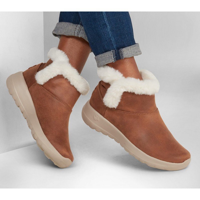 Delight your feet with plush comfort and style wearing Skechers On-the-GO® Joy – Endeavor. This casual cold-weather pull-on bootie features a 3M® Scotchgard® treated Perform-Tex upper with faux fur collar trim, a Skechers Air-Cooled Goga Mat™ insole, and lightweight 5GEN® Technology midsole cushioning.