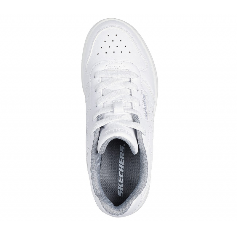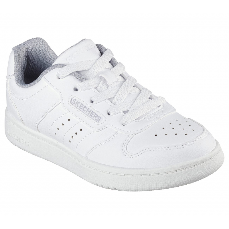 Alley-oop in comfortable court-style wearing Skechers Street™ Quick Street – Vorton. This machine washable lace-up low-top features a smooth duraleather upper with perforated quarter paneling and a cushioned comfort insole.